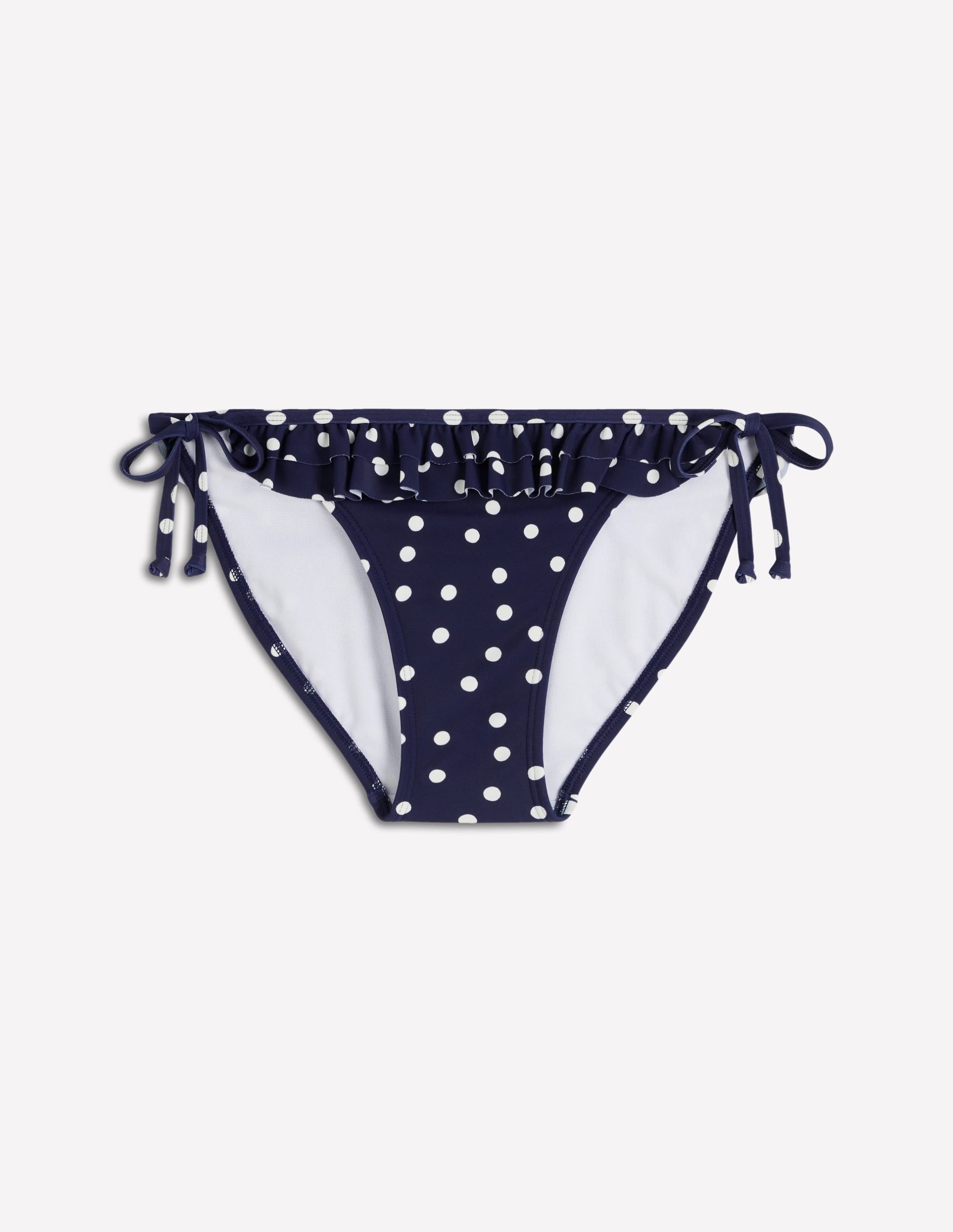 Ruffle Bikini Bottoms-French Navy. Painted Dot
