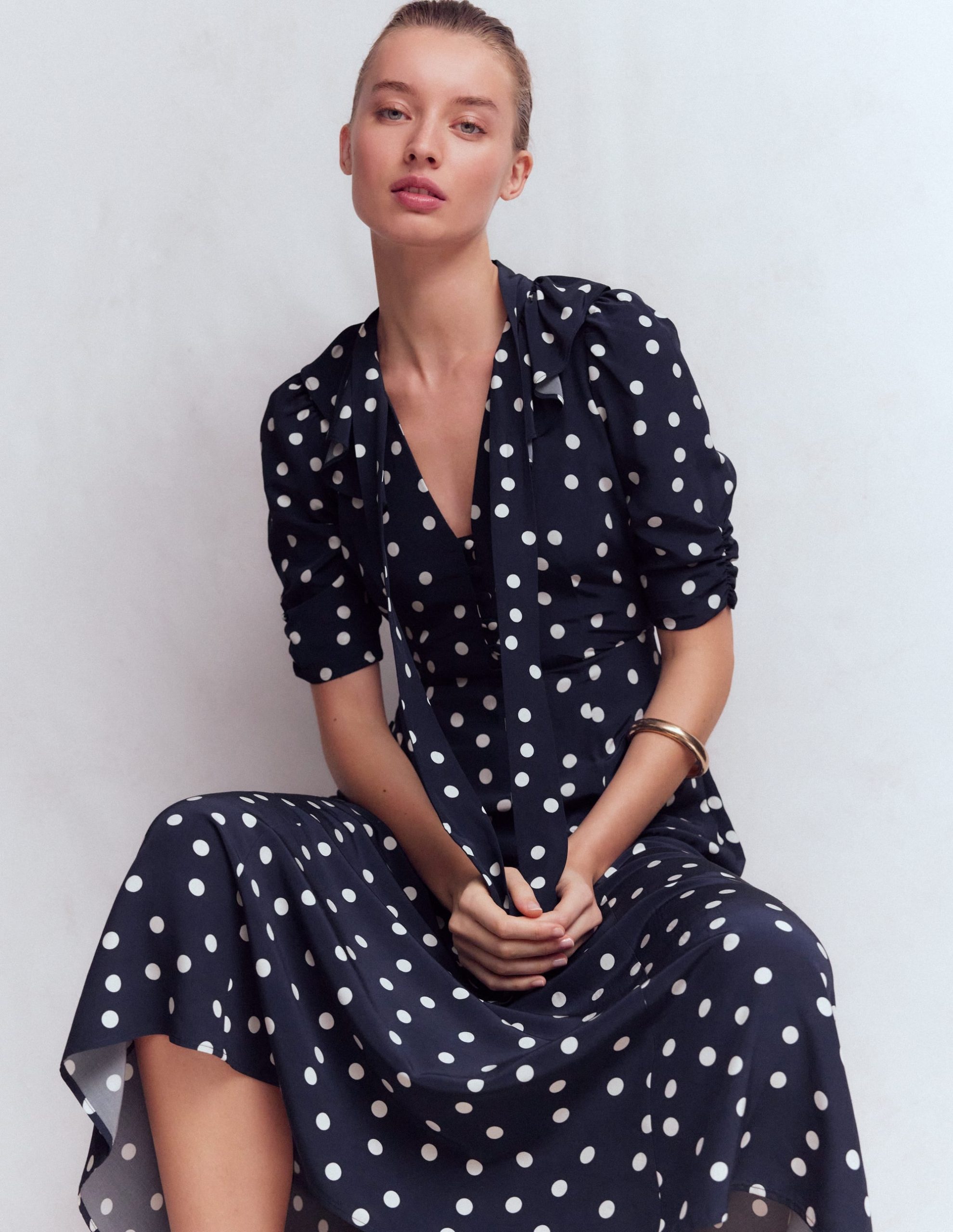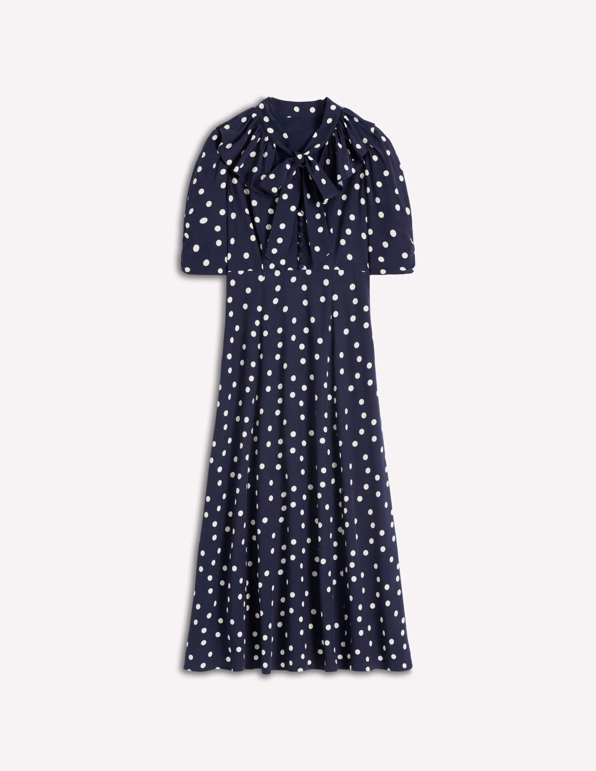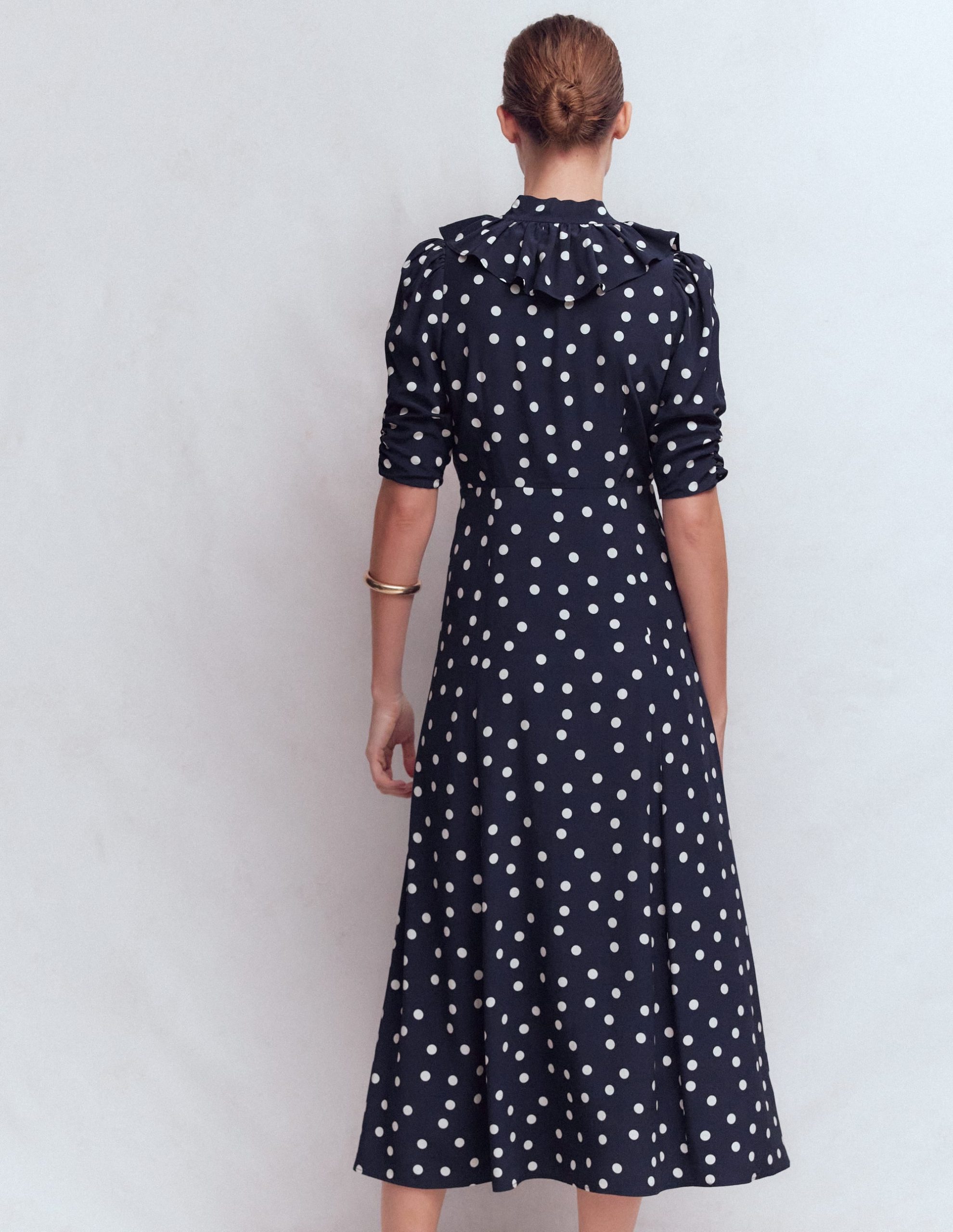 Ruffle Collar Midi Dress-French Navy Painted Spaced Dot