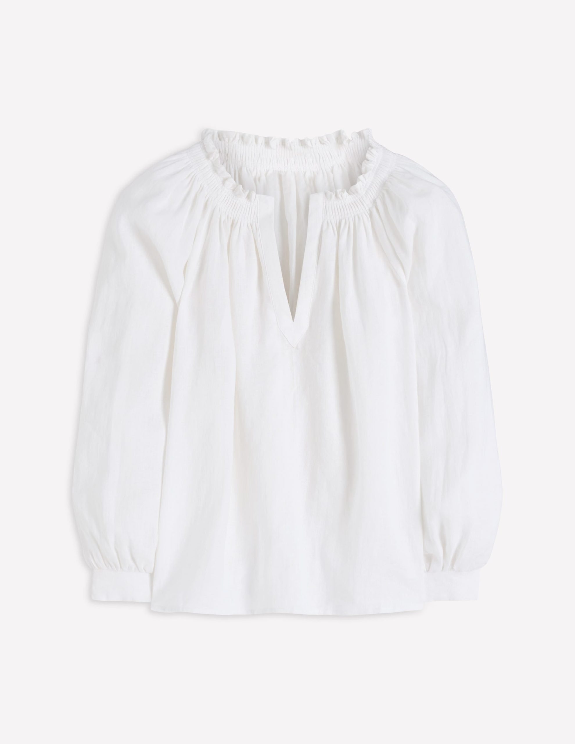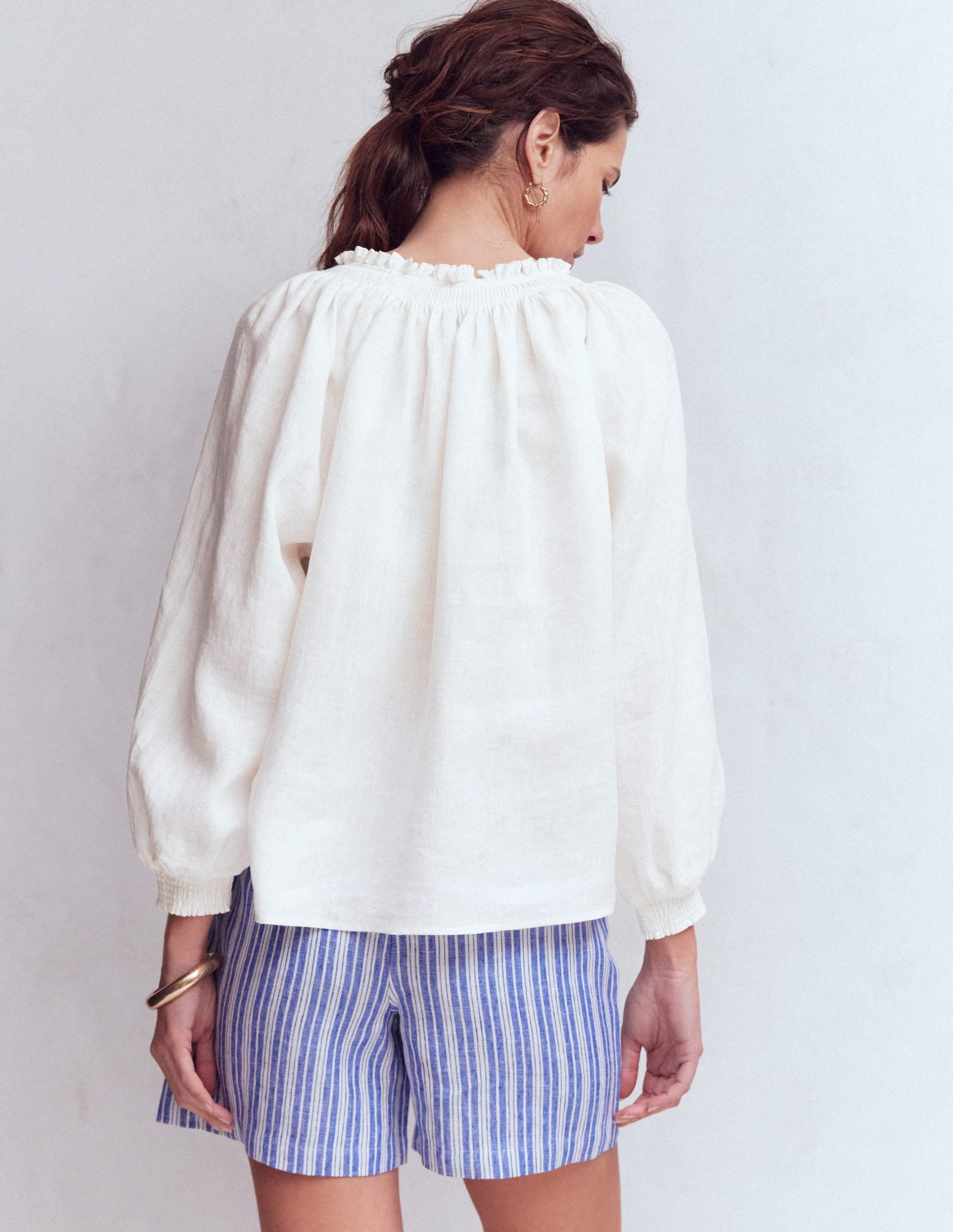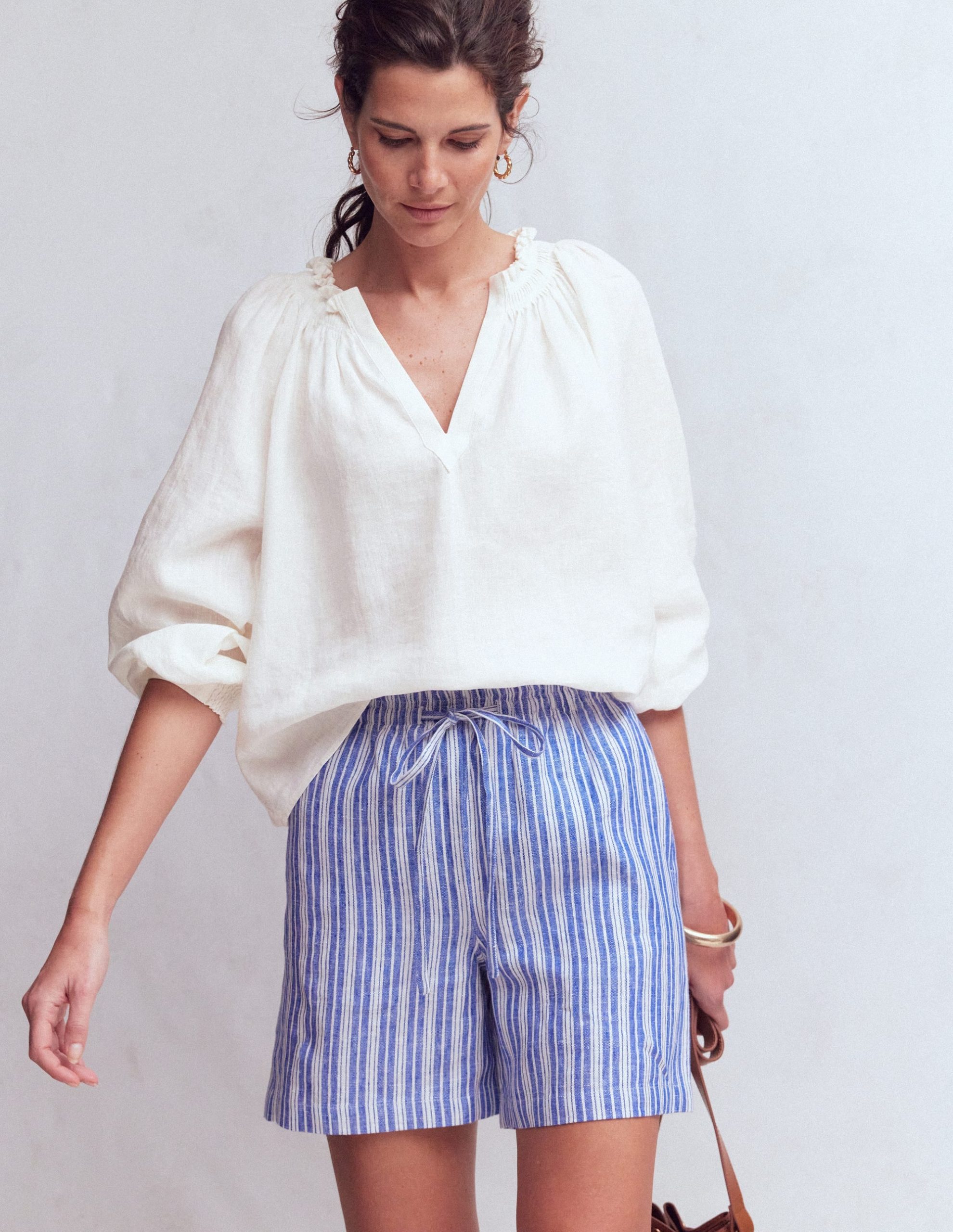 Crafted from natural. breathable linen. this floaty top is the perfect choice for warmer days. Pleats and gentle gathers give it a laid-back. relaxed look. For a co-ord try the option with matching trousers.