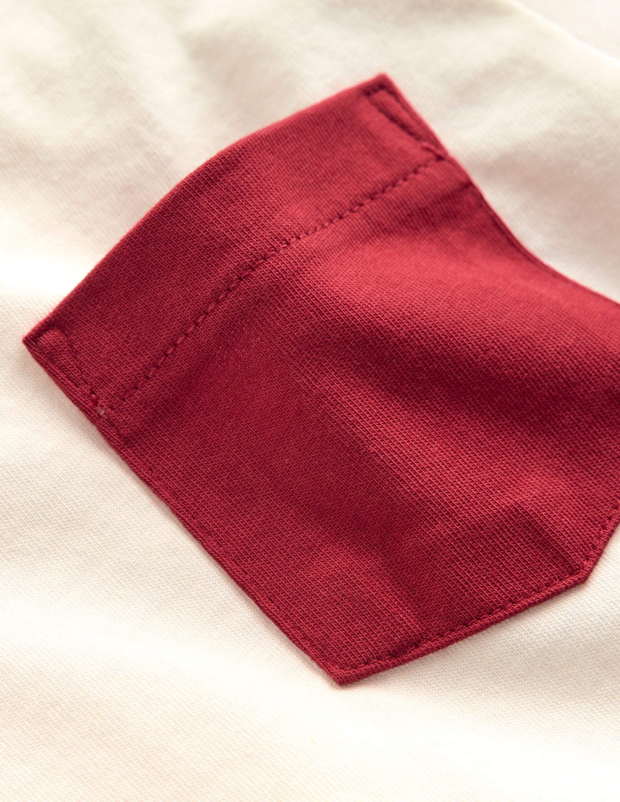 A cosy crew neck colourblock tee (try saying that with a mouth full of sweets) that is set to be an instantly summer hit. Minis will love the contrast patch pocket. racer stripes and soft-on-their-skin cotton fabric.