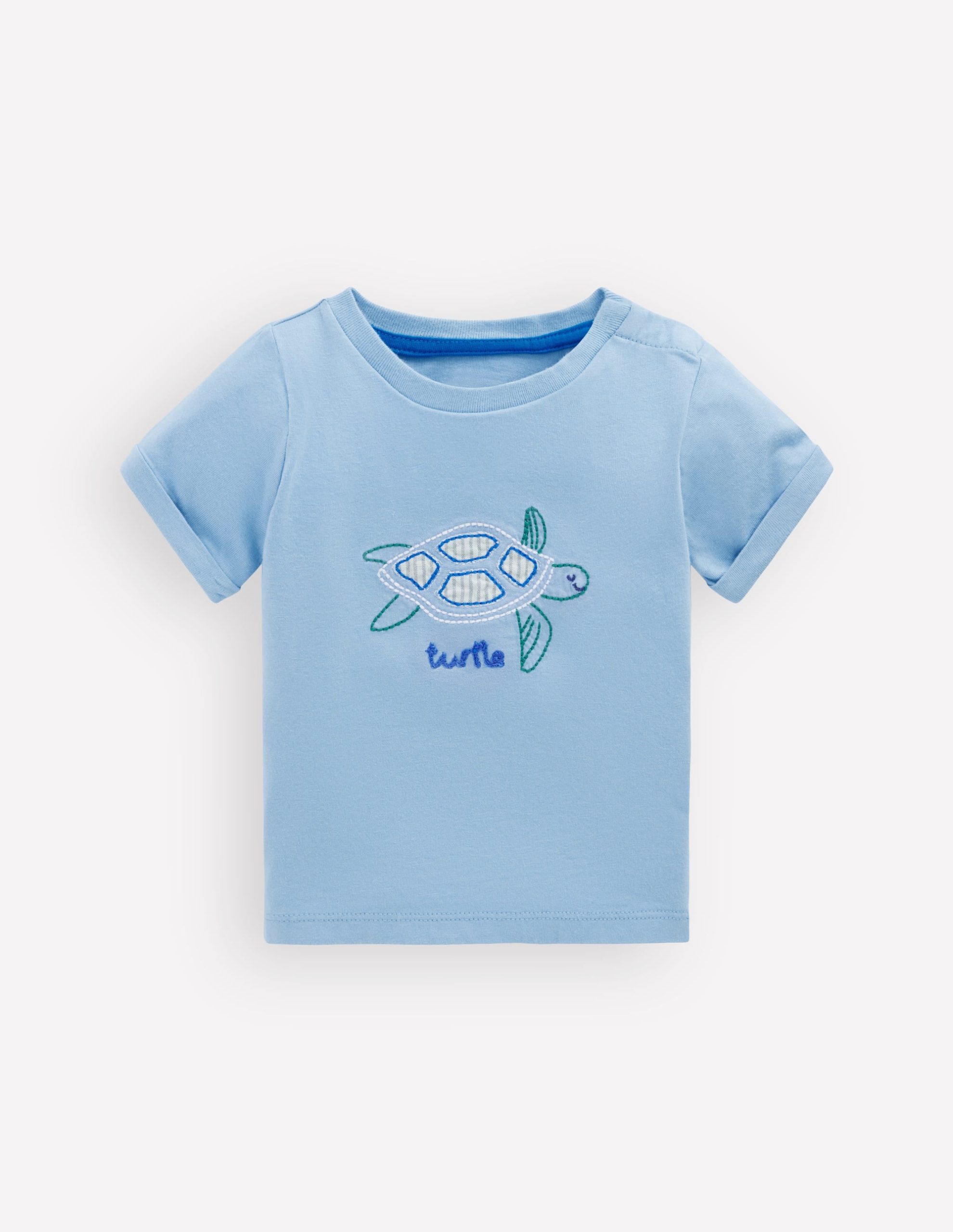 Short Sleeve Logo T-shirt-Blue Turtle Chain Stitch