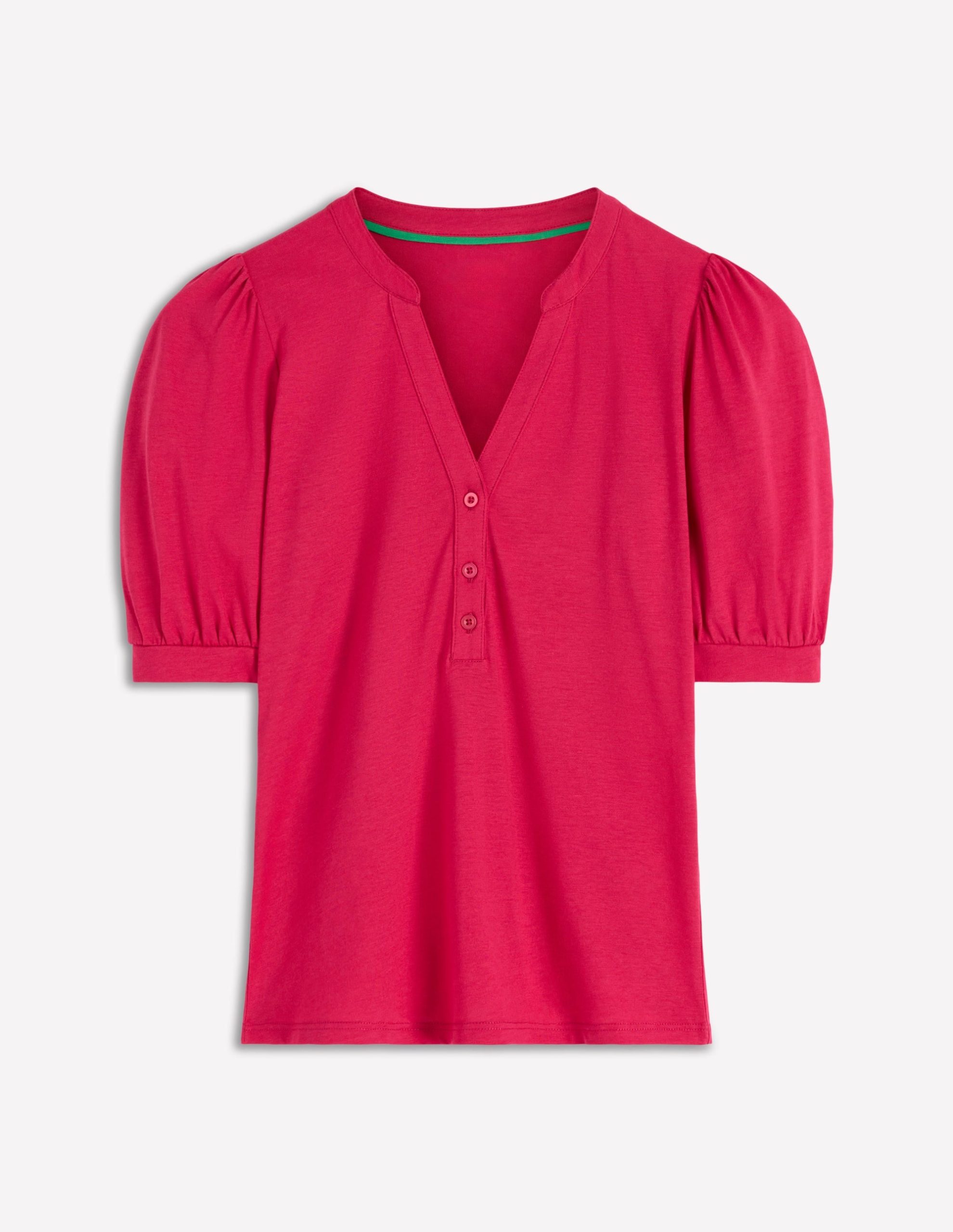 A Henley top with a twist: this style is super soft with short puff sleeves and an open neck. It goes with anything, comes in gorgeous shades and will be a season spanning staple.