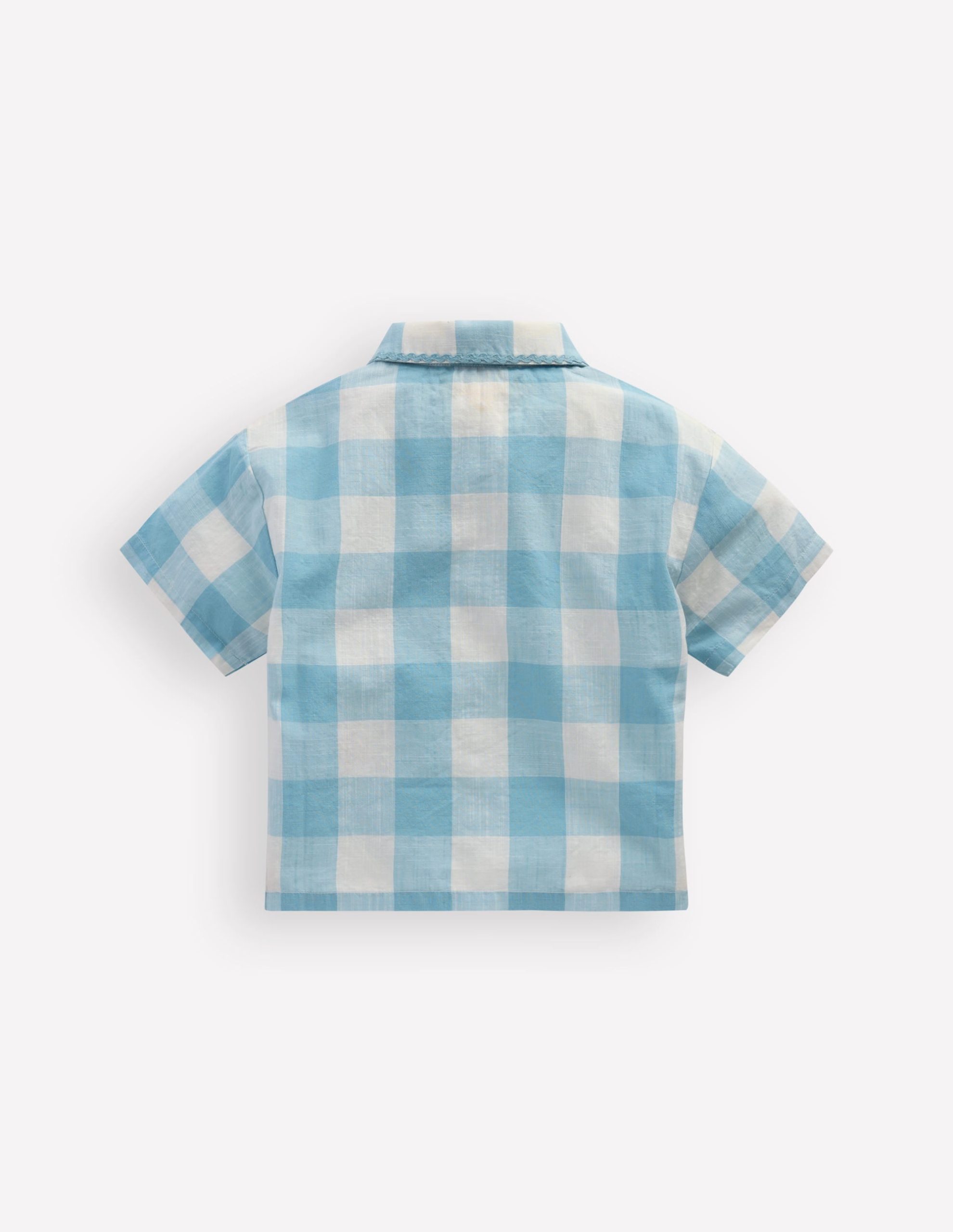 Short Sleeve Relaxed Shirt-Blue Gingham Embroidery
