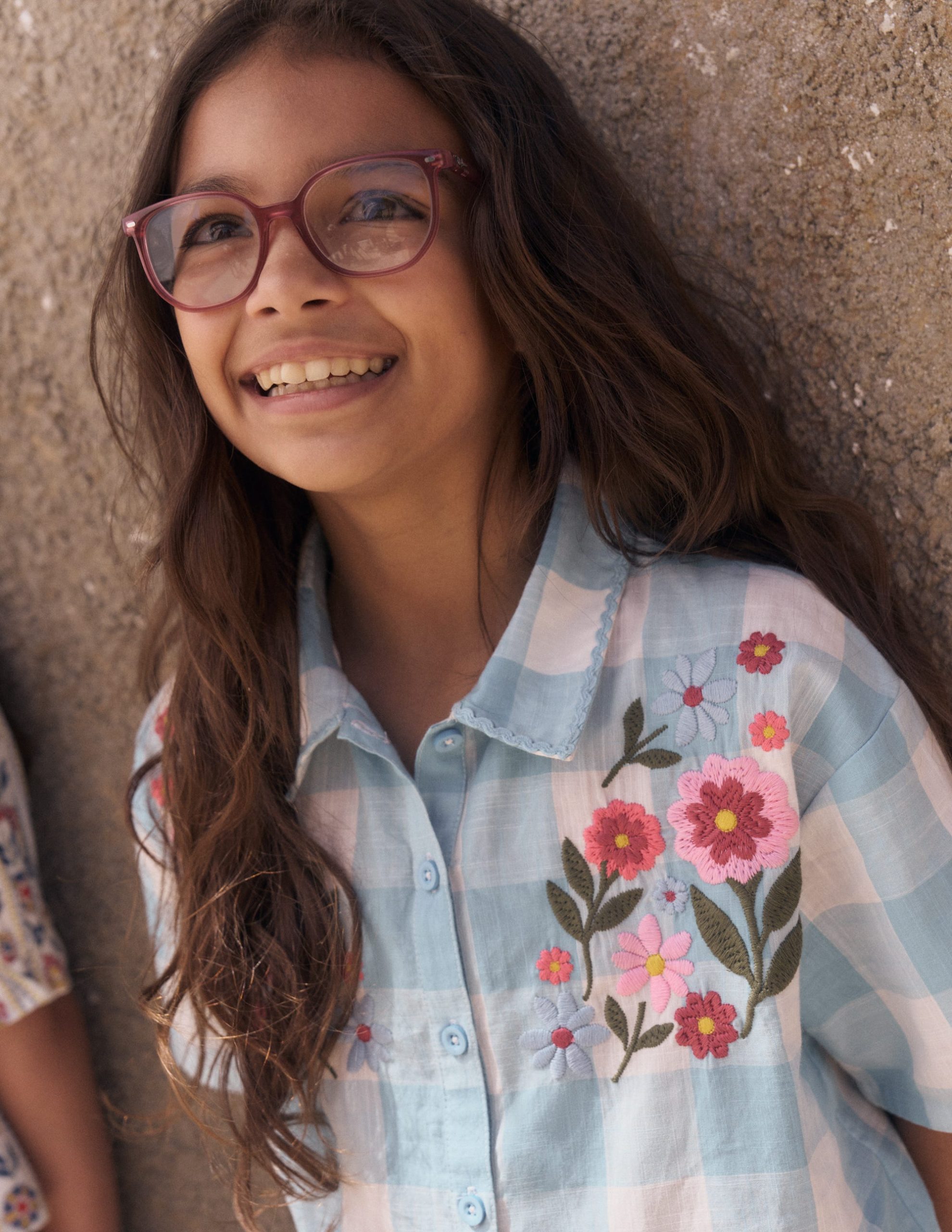 Shirts don’t just have to be smart. Minis will love this relaxed style with its more oversized fit. Crafted from soft cotton. it’s perfect for warmer days. And if you love the style with embroidered detail. you can get the matching shorts too.