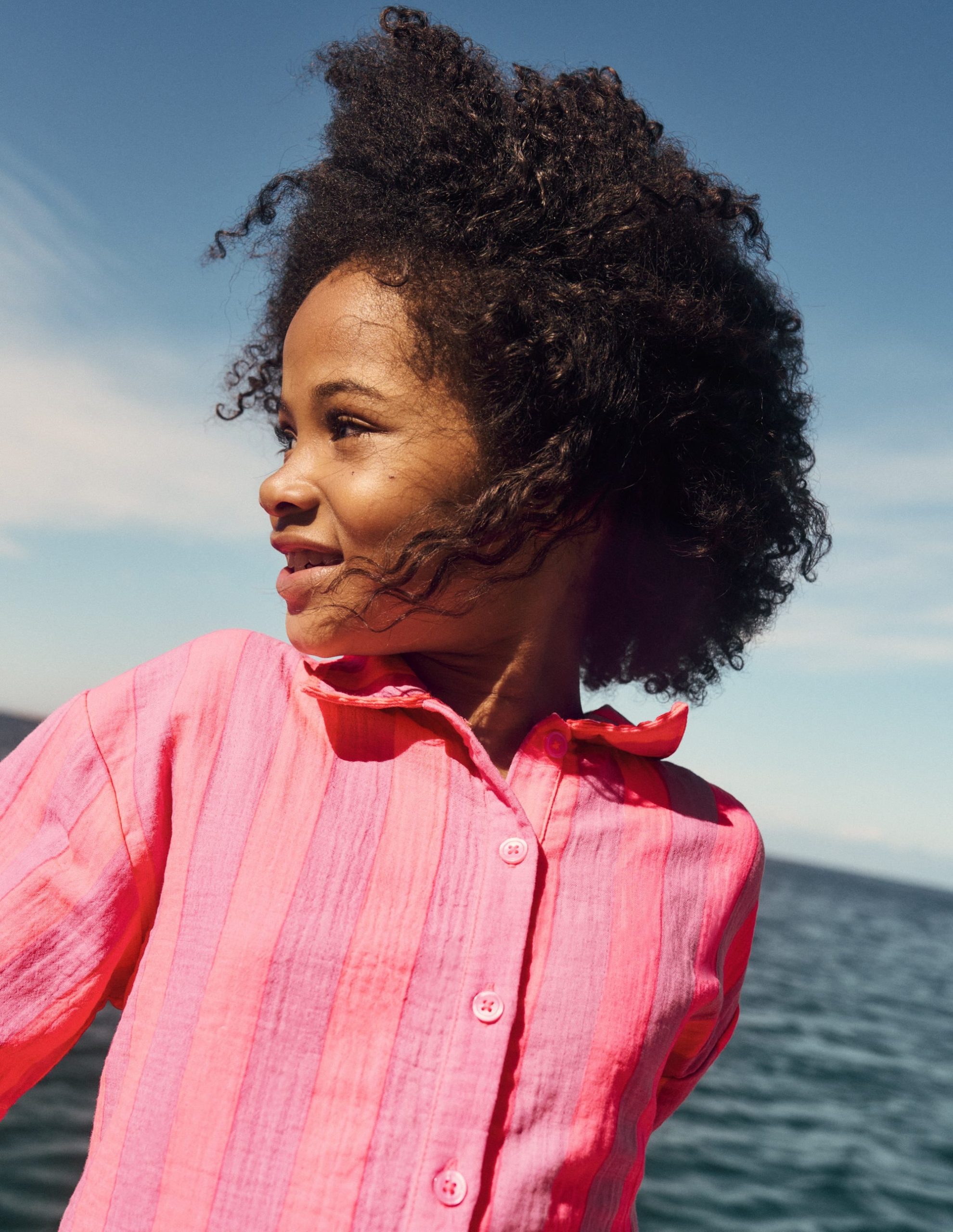 Shirts don’t just have to be smart. Minis will love this relaxed style with its more oversized fit. Crafted from soft cotton. it’s perfect for warmer days. And if you love the style with embroidered detail. you can get the matching shorts too.