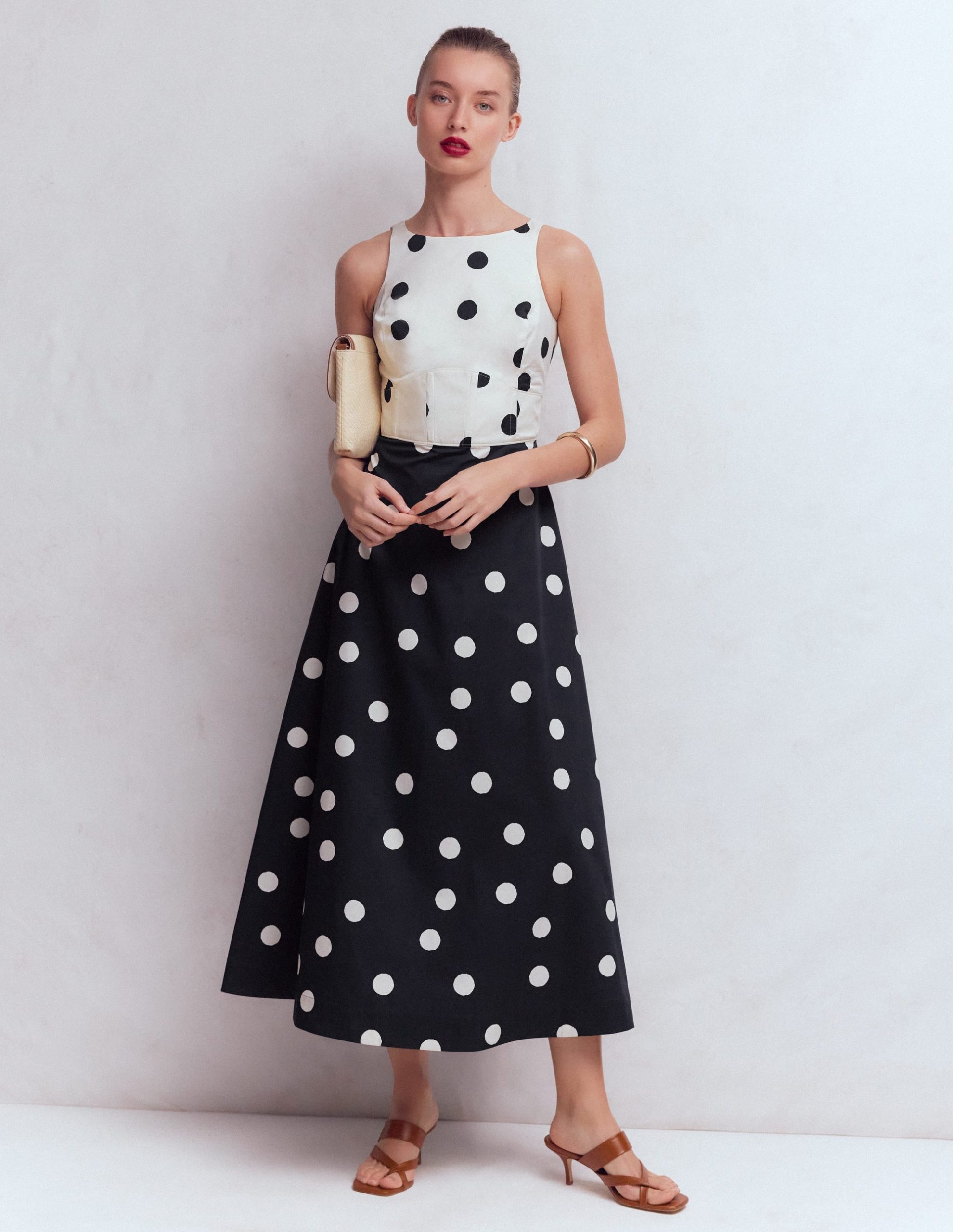 Need a dress you can rely on now your summer invites are flooding in This is the one. The fitted high-neck bodice is sculpted to perfection with princess seams that give way to a long body-skimming skirt with hidden pockets. Dots. florals or lace. take your pick.