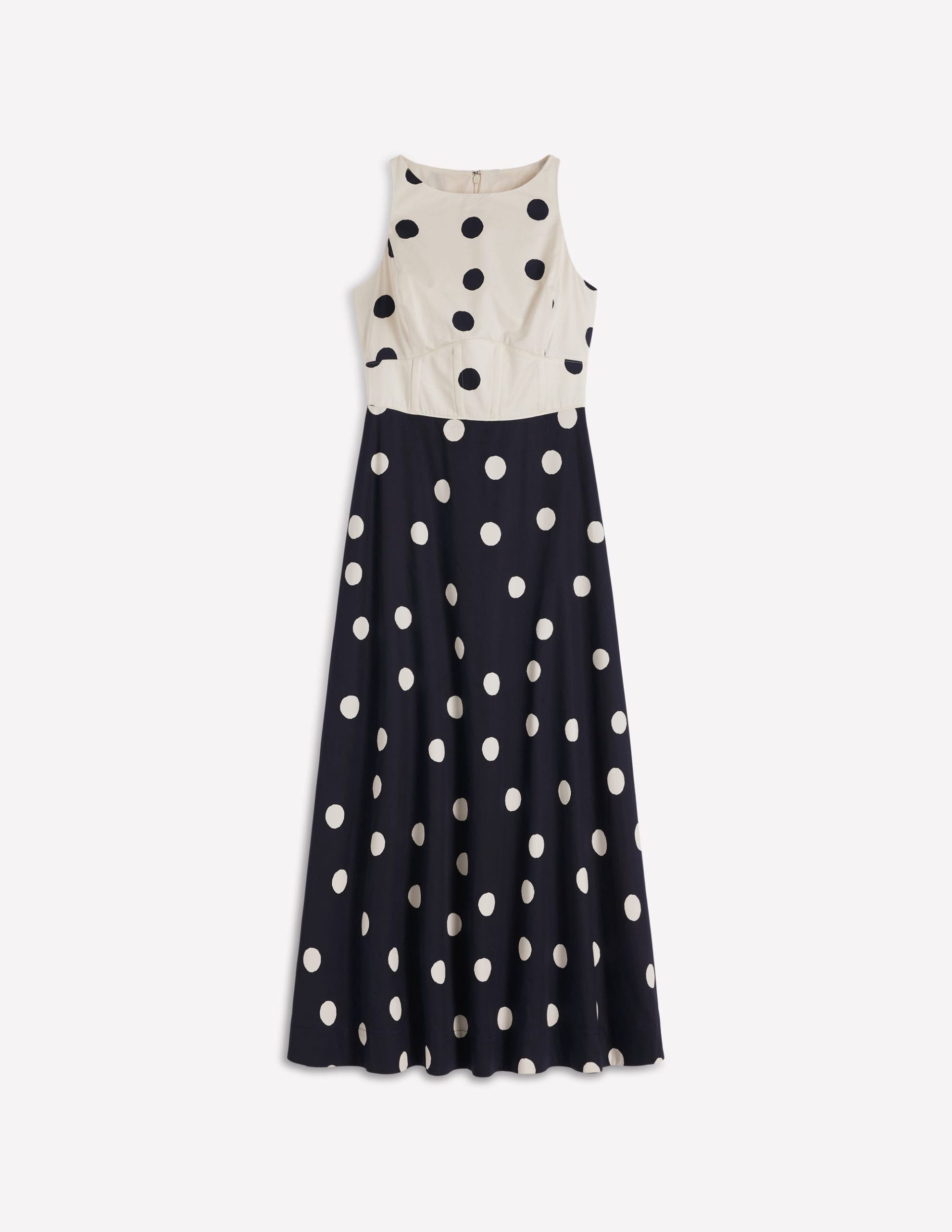 Silvia Boned Bodice Maxi Dress-French Navy Painted Spaced Dot