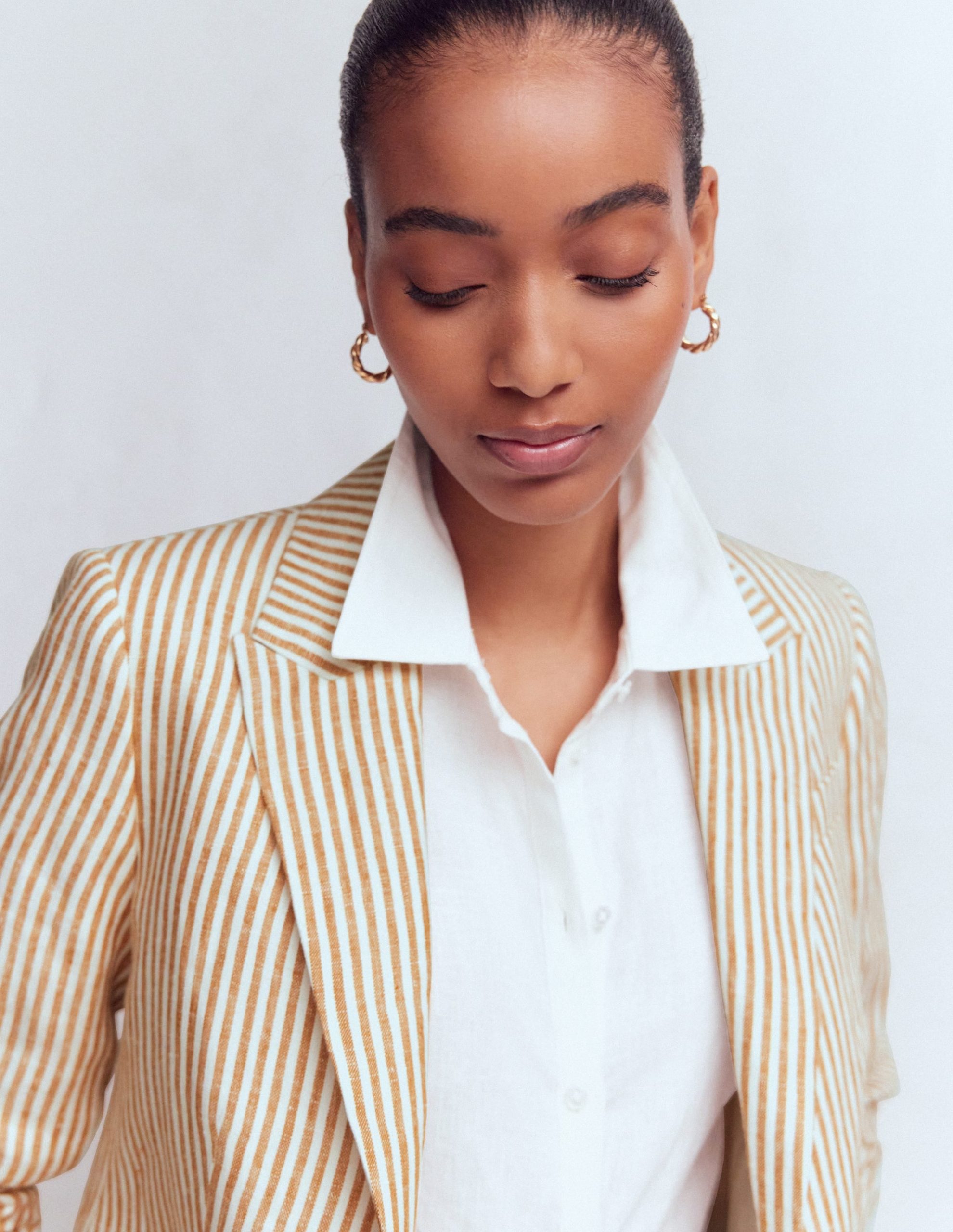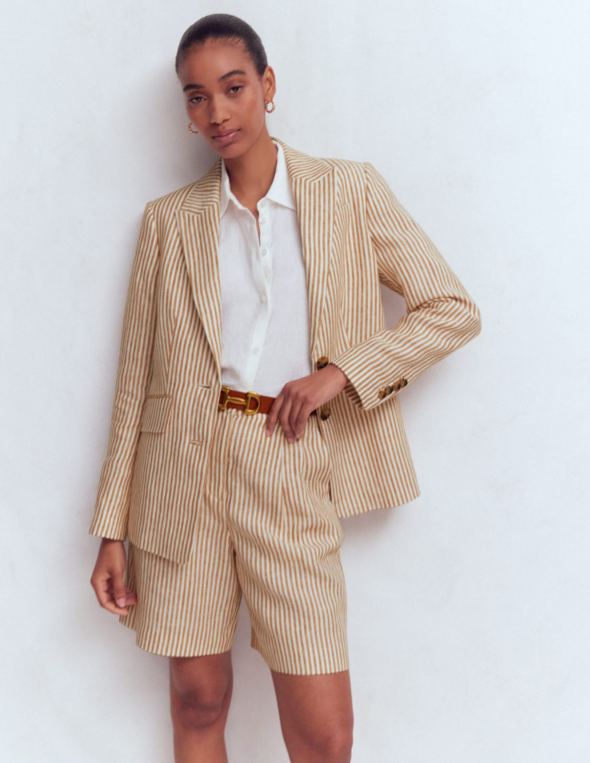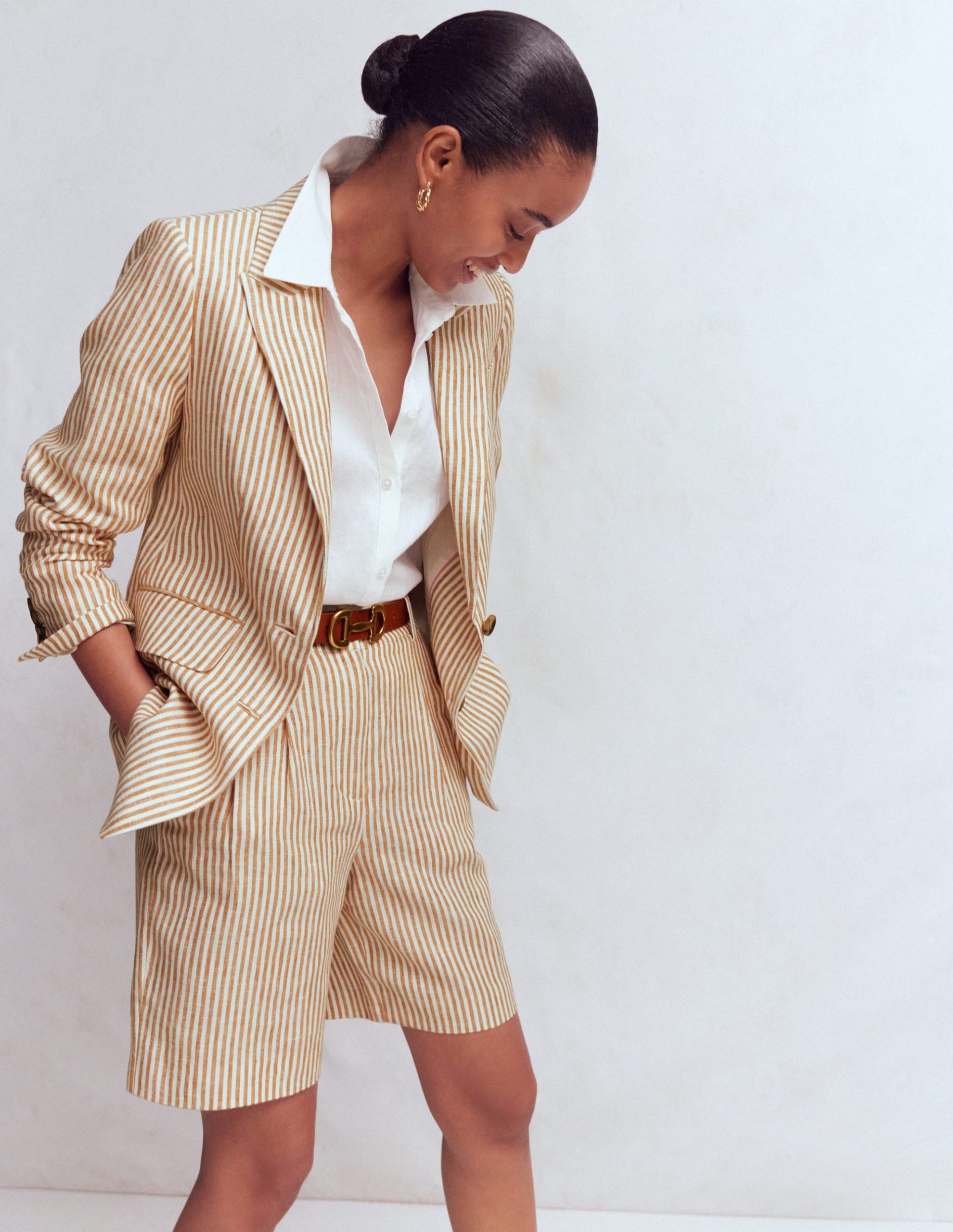 Stamford Linen Blazer-Brown. Ivory Ticking Stripe