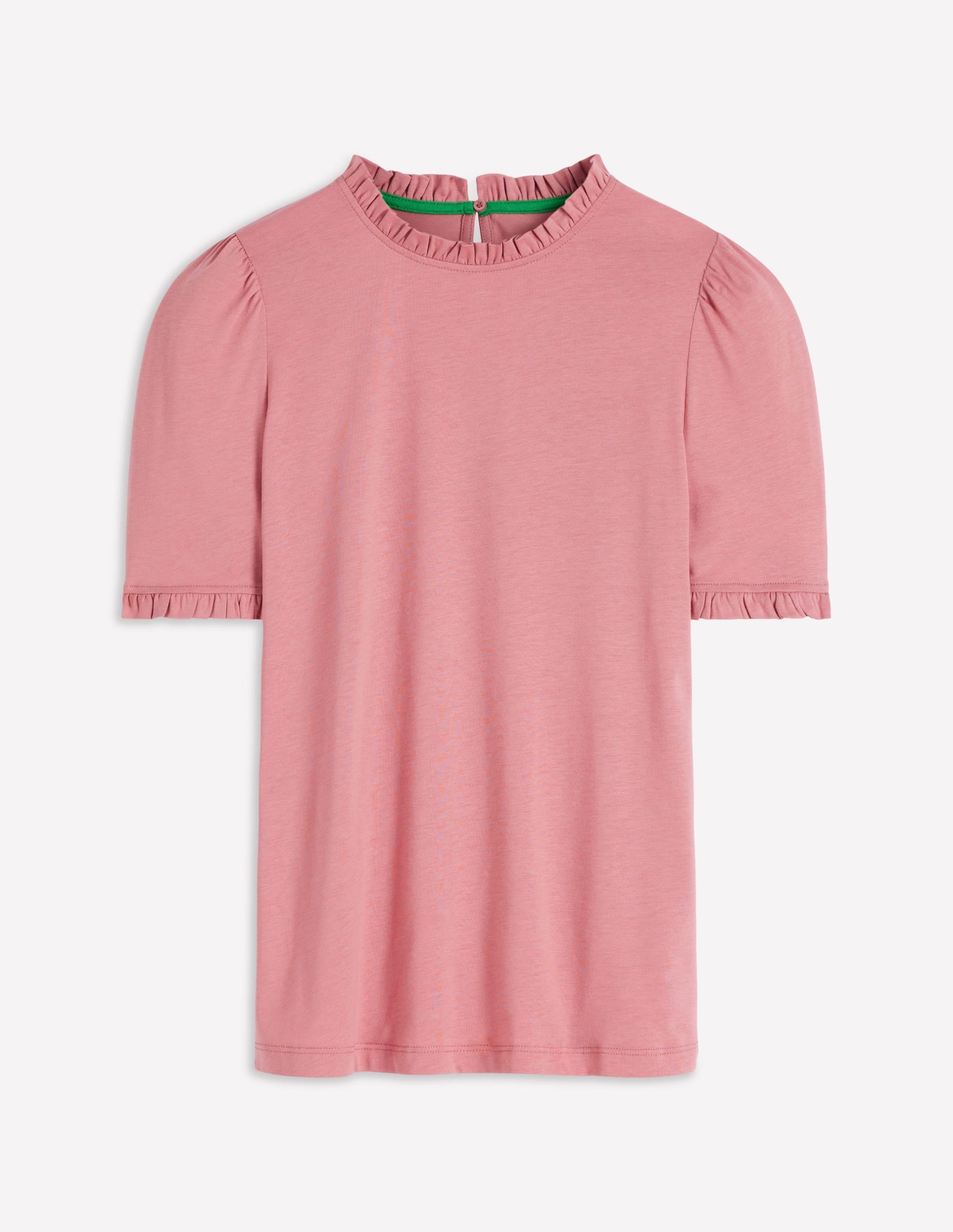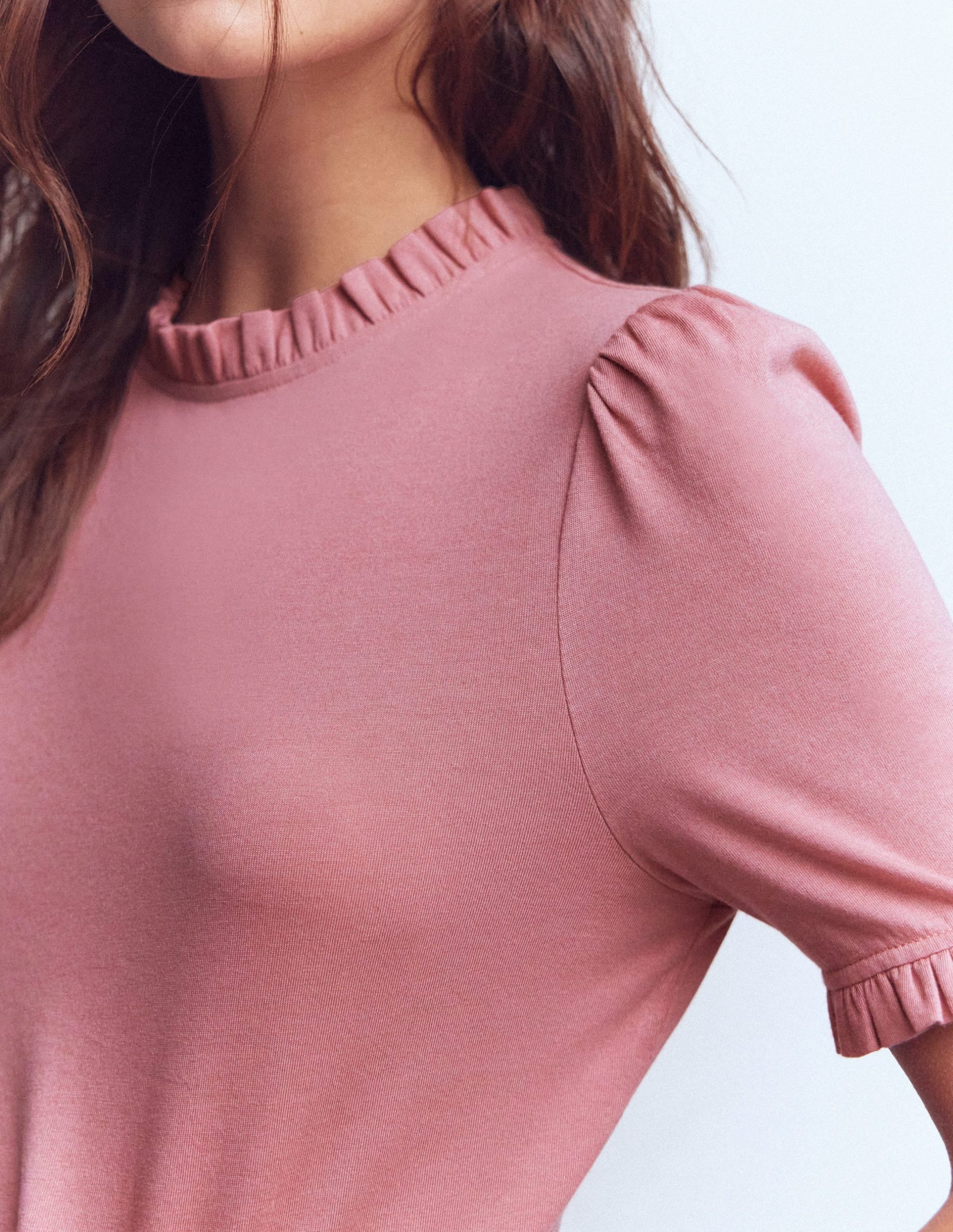 Effortlessly elevate your everyday look with our classic supersoft T-shirt, a slim fit complete with frills at the neckline and short sleeves.