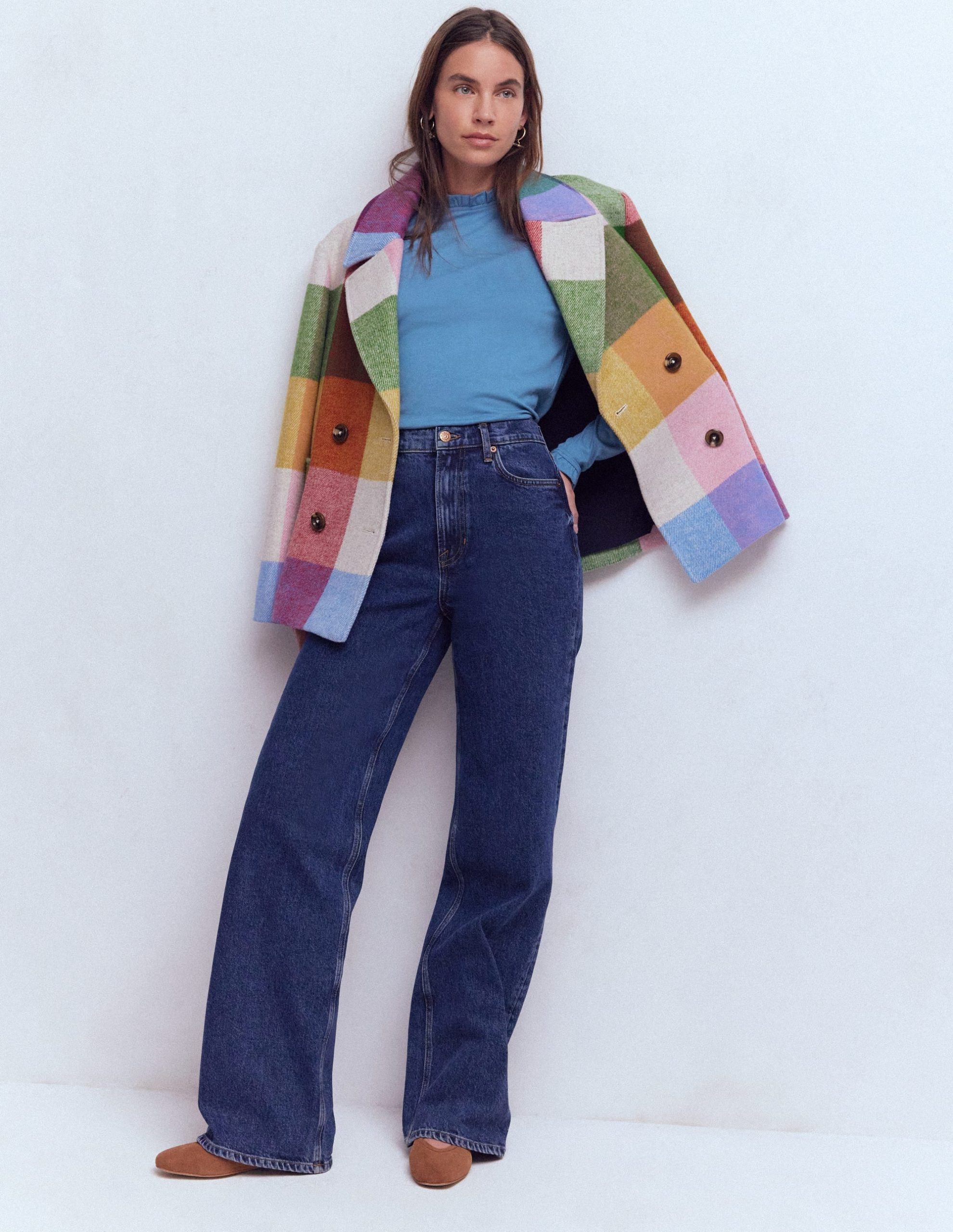For when you’d rather be in pyjamas but can’t really skip that presentation. Our super soft frill detail top is a joyful compromise. It works marvelously alone with jeans or as a base layer with the ruffled neckline and cuffs peaking out from under cosy knits and coats.