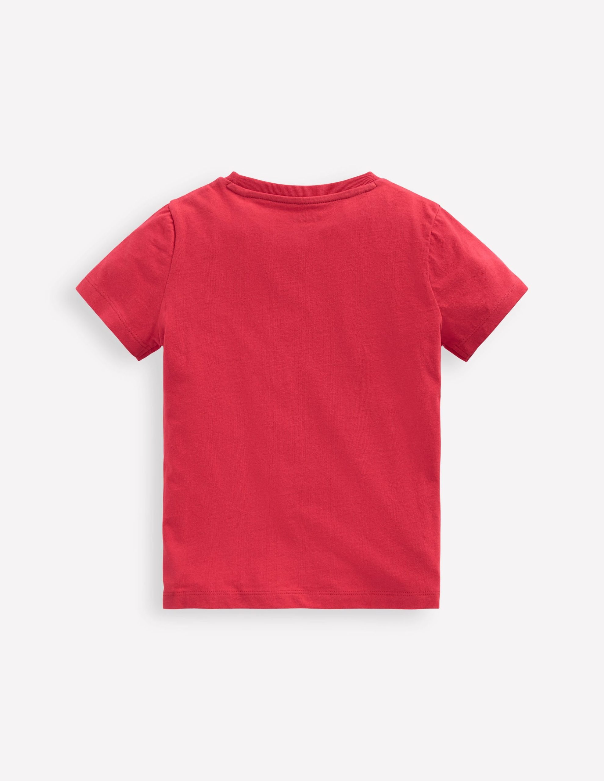Lots of tiny stitches make up the bold motif on this pure cotton colourful T-shirt. And it has an easy relaxed fit for all-day adventures. Choose from a variety of animals. vehicles and marine life.