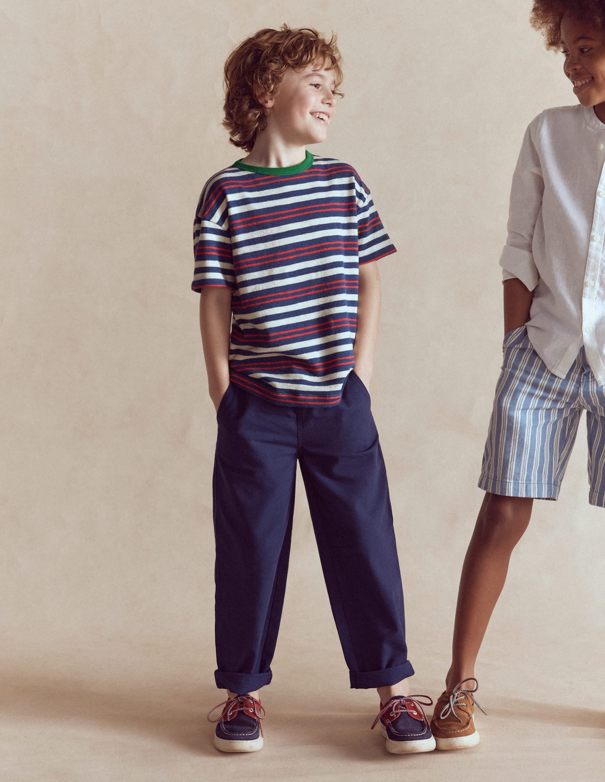 Minis will embrace stripe-tacular days in this soft cotton T-shirt. The dropped shoulders and relaxed shape make moving easy and it’s sturdy enough for outdoor adventures. Of course we’ve added bright and brilliant colours. Easier to spot than Wally.