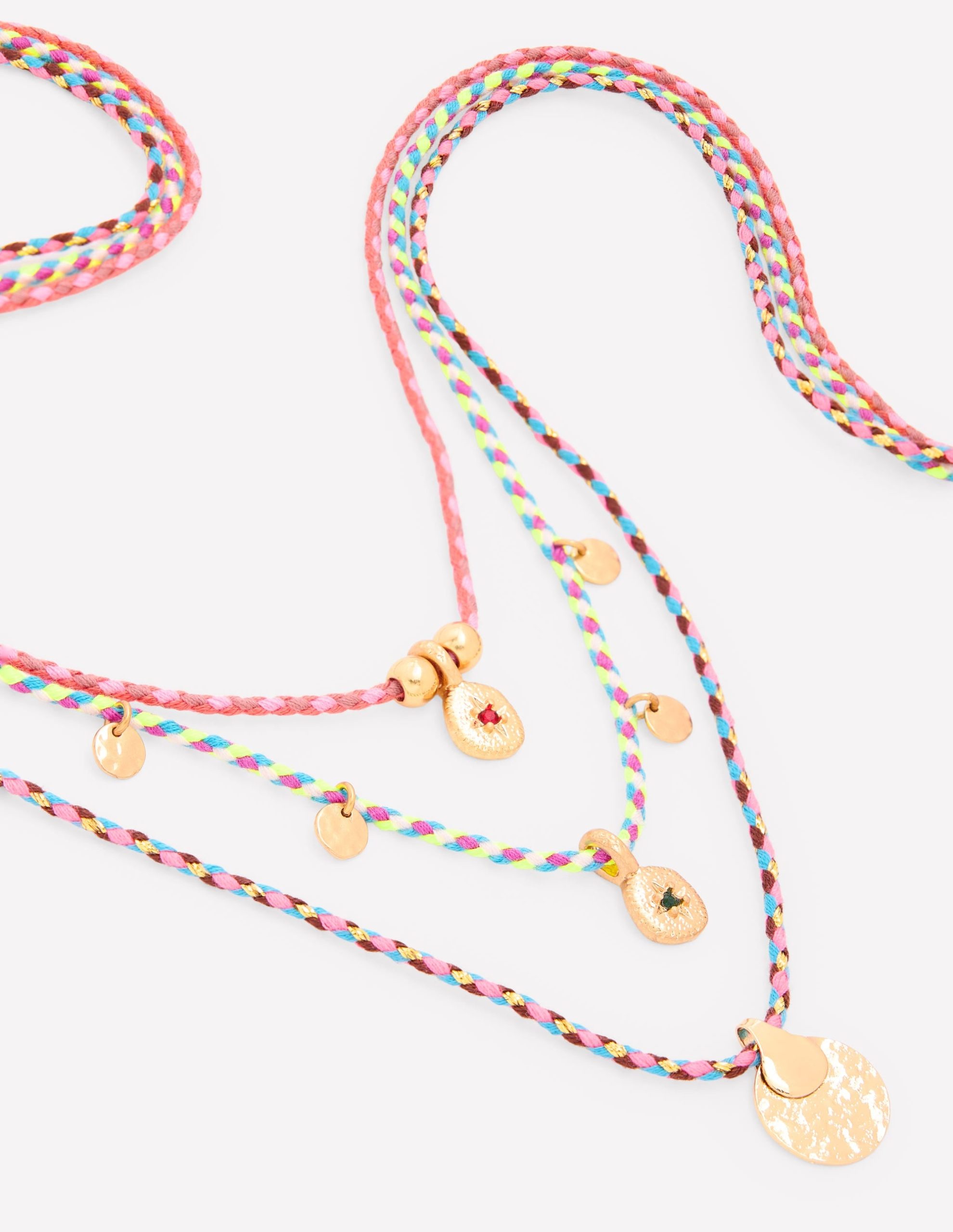Where’s the beach We say it’s anywhere when you’re wearing this colourful layer necklace. Three-in-one-clasp it’ll save you time accessorising and look great with everything from bikinis to floaty dresses. The gold discs will catch the sun wherever you go.