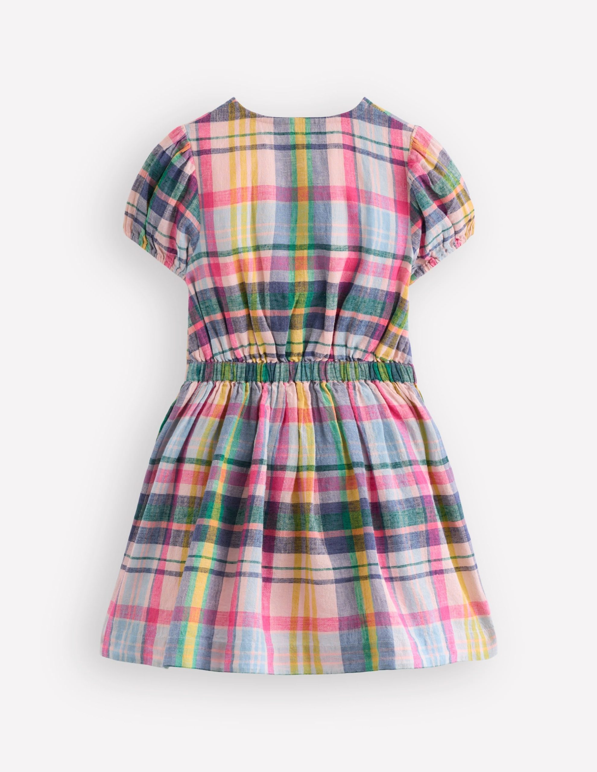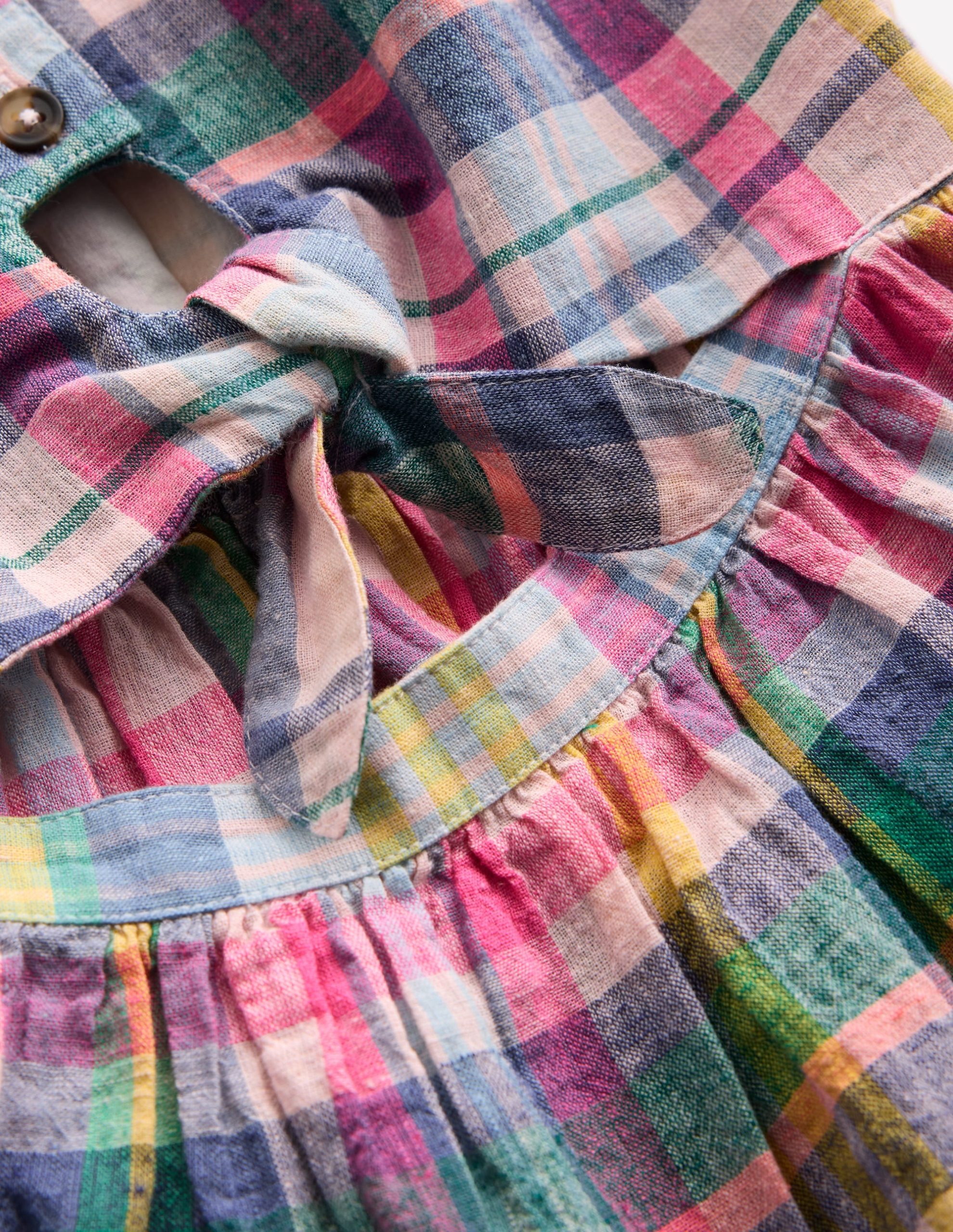 Tie Front Woven Dress-Blue. Pink and Green Check
