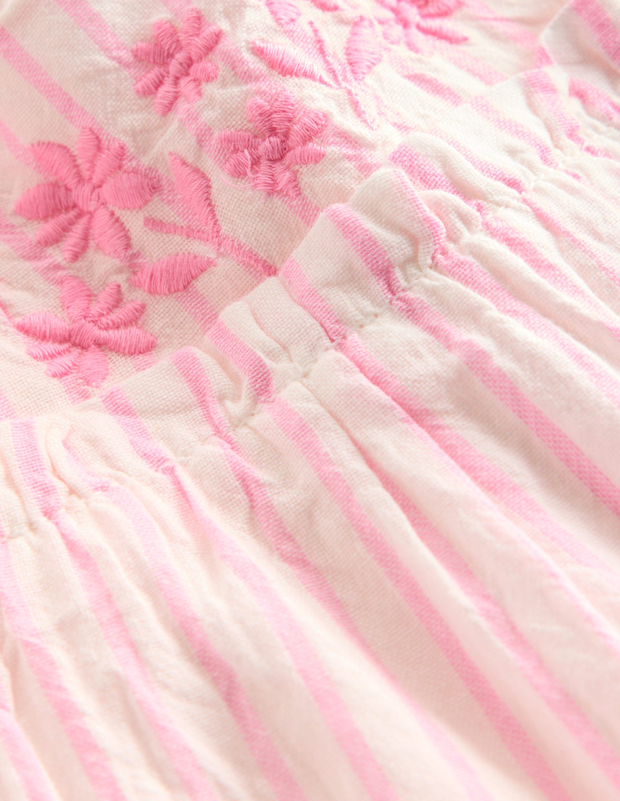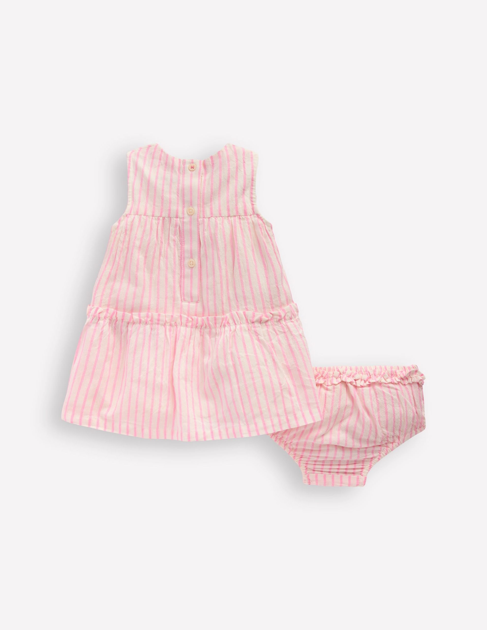Tiered Ruffle Dress-Pink Embroidered Stripe