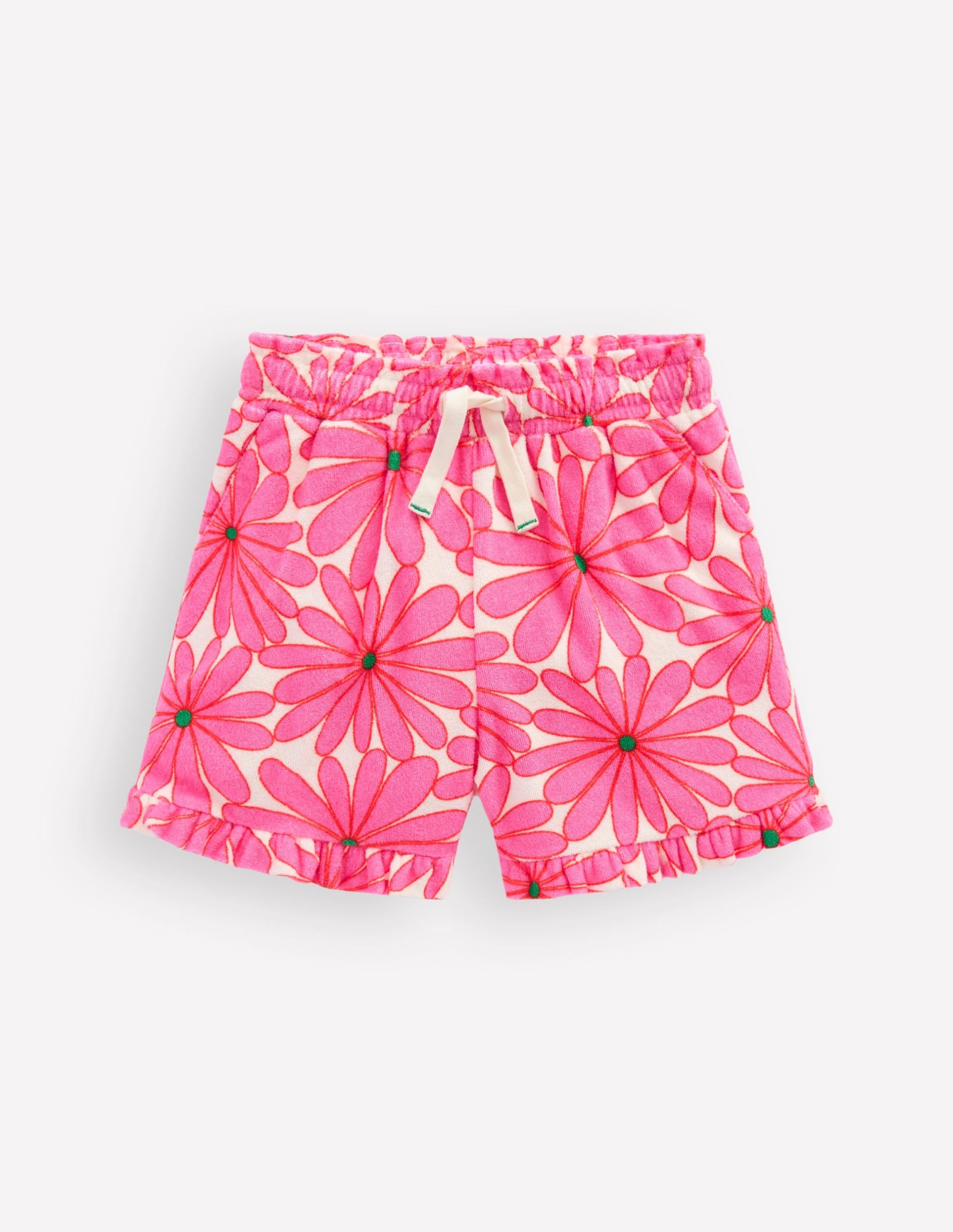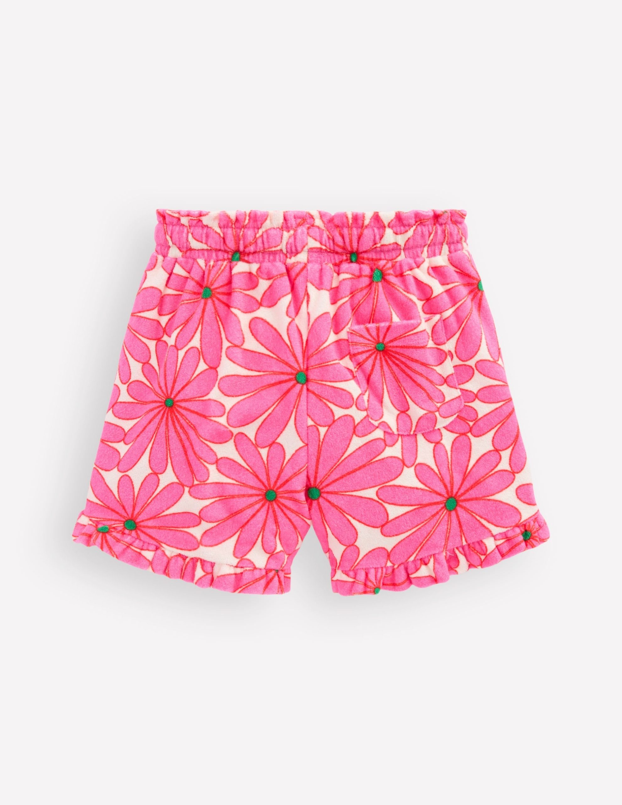 Towelling Ruffle Shorts-Festival Pink Giant Daisy