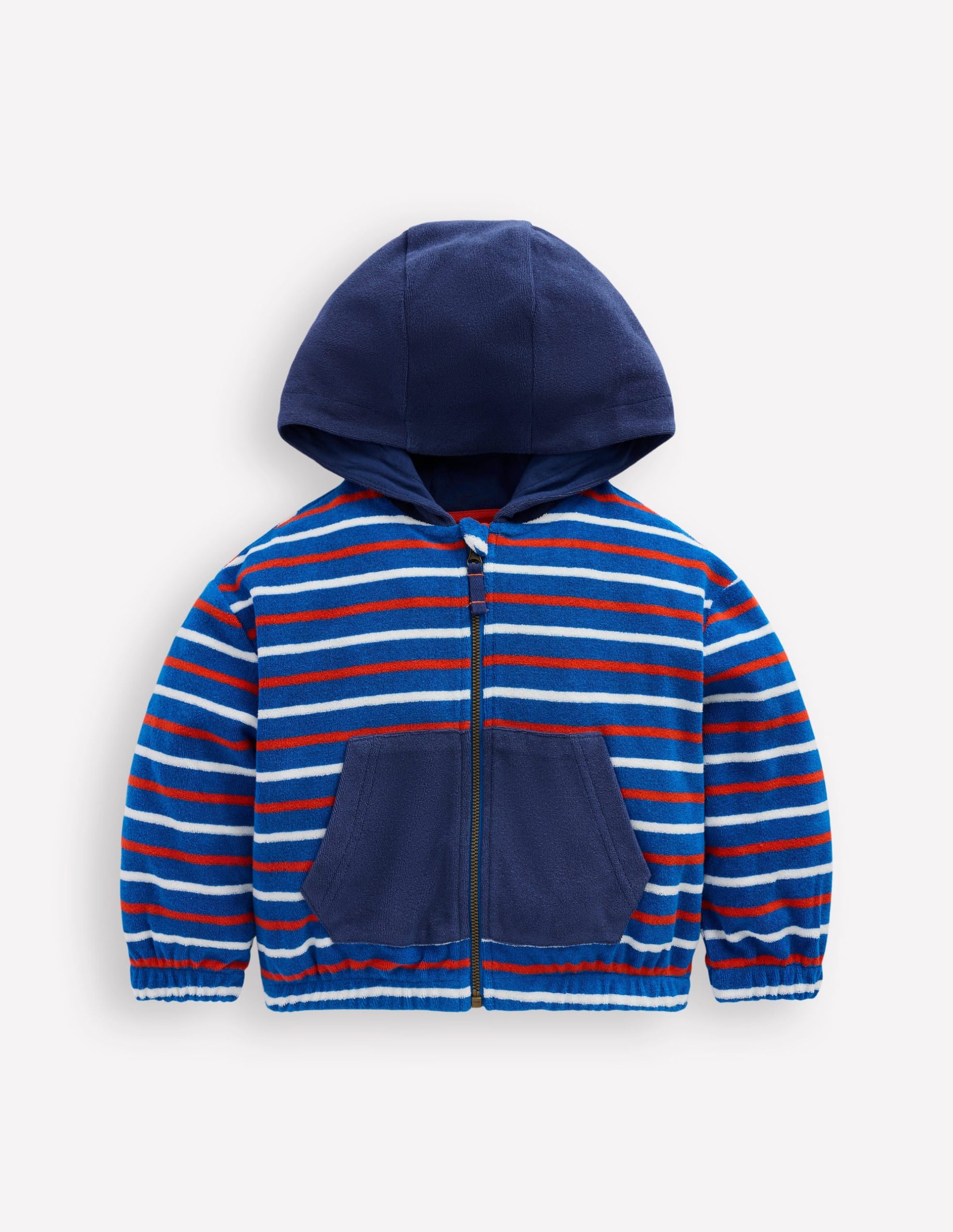 Towelling Zip-through Hoody-Blue Multi Stripe