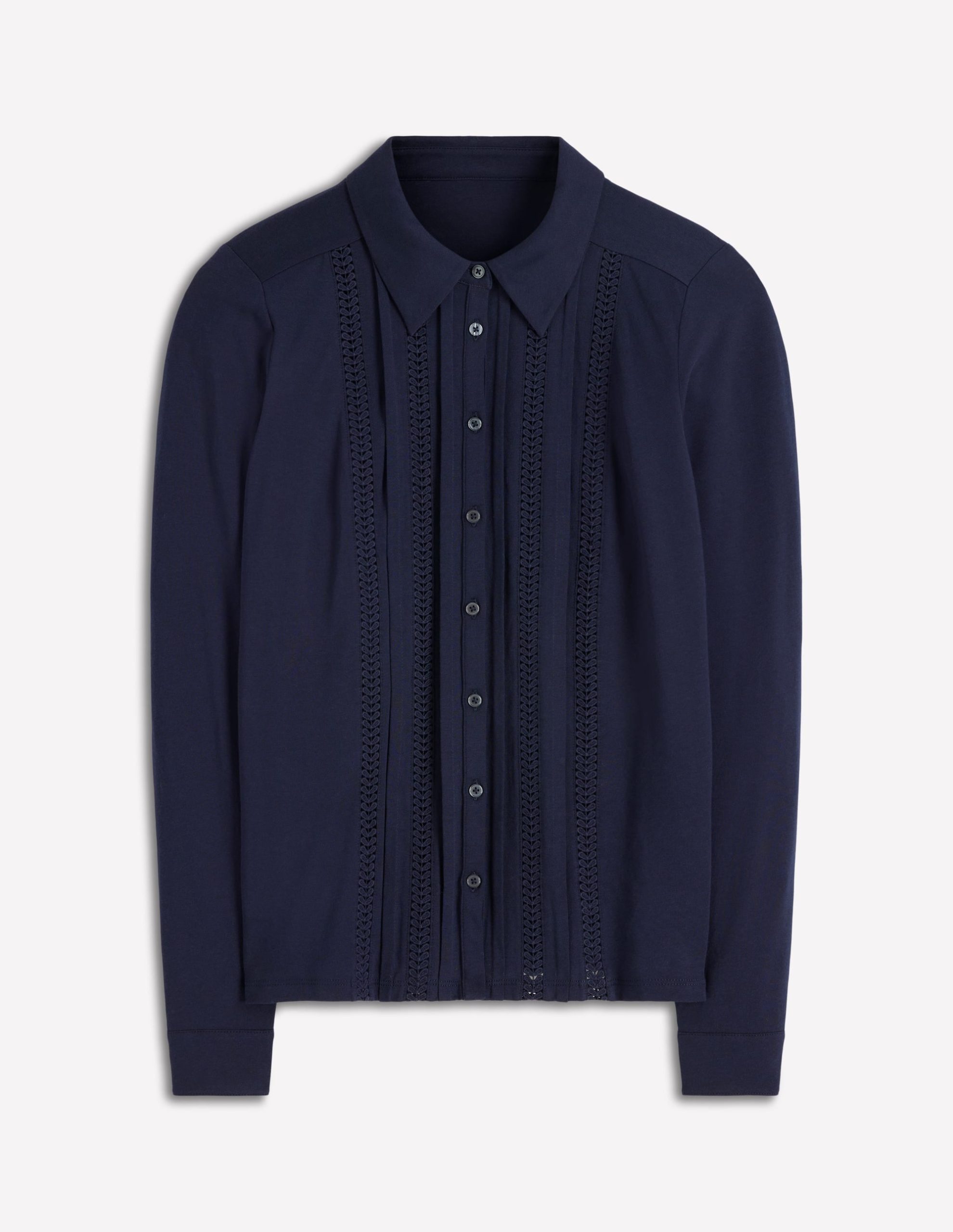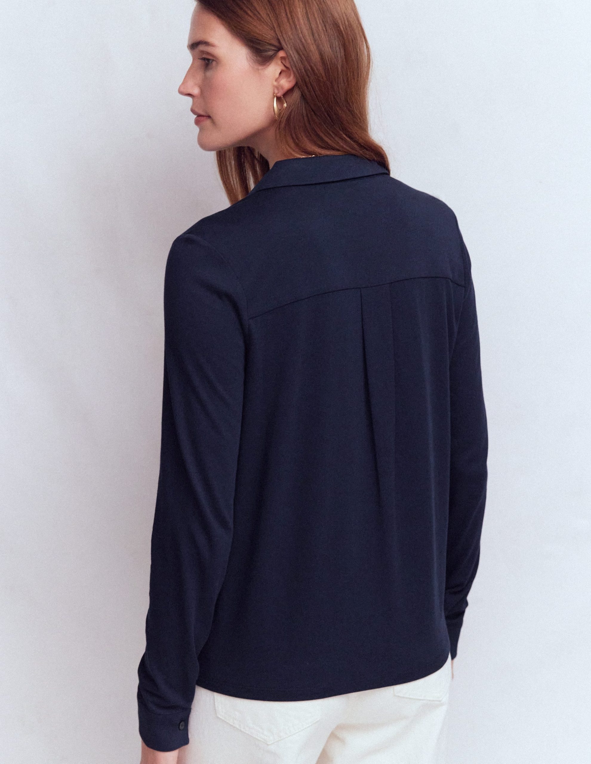 We’ve taken a classic shirt and added trim for an extra touch of va-va-voom. The cotton and Tencel™Modal blend fabric is extra soft and drapey. Choose from a variety of colours and wear it anywhere.