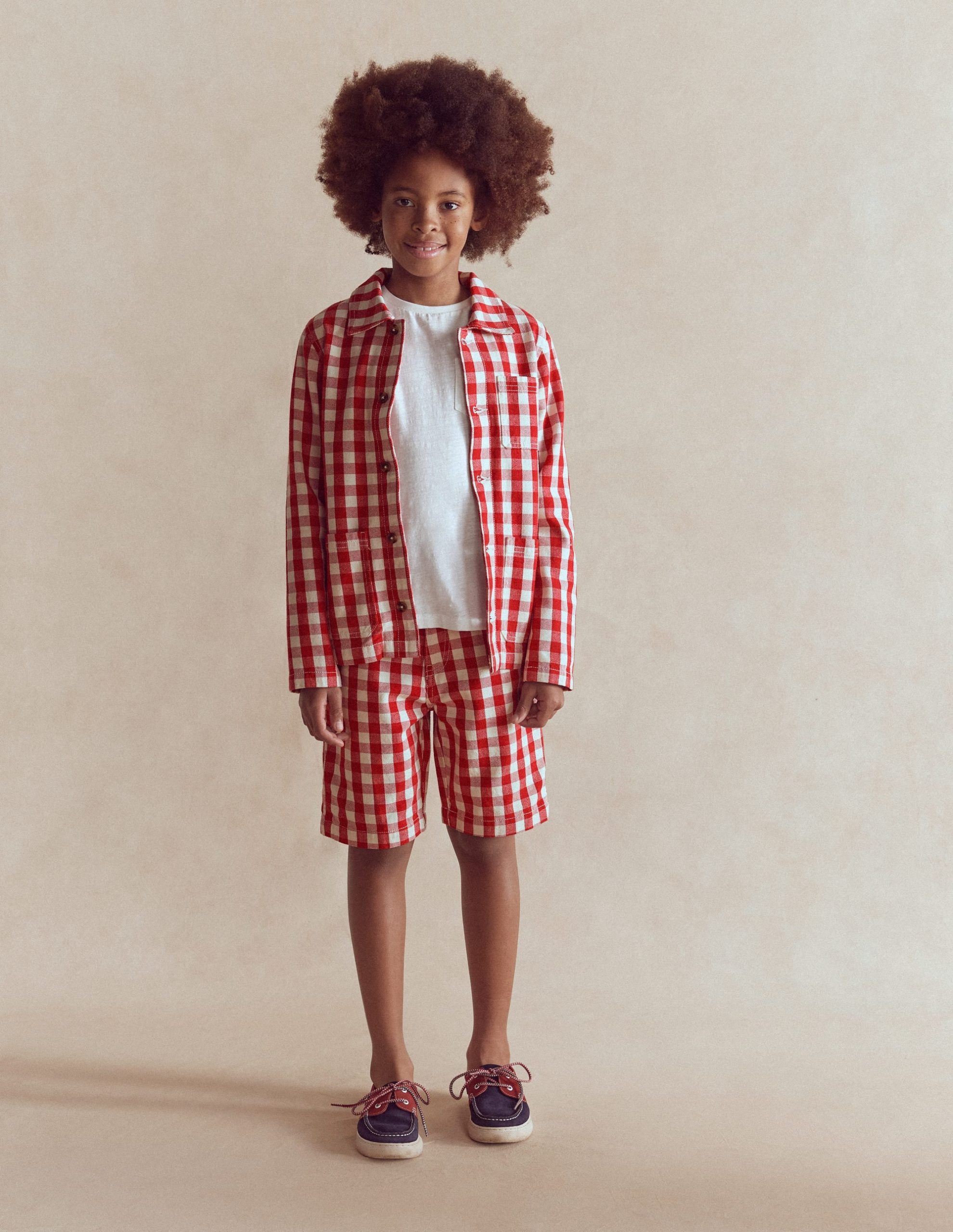 This chore jacket won’t make Minis magically tidy their bedroom (sorry). but it will smarten up their wardrobe with its canvas cotton. chunky buttons and large patch pockets. Pair with the matching shorts.