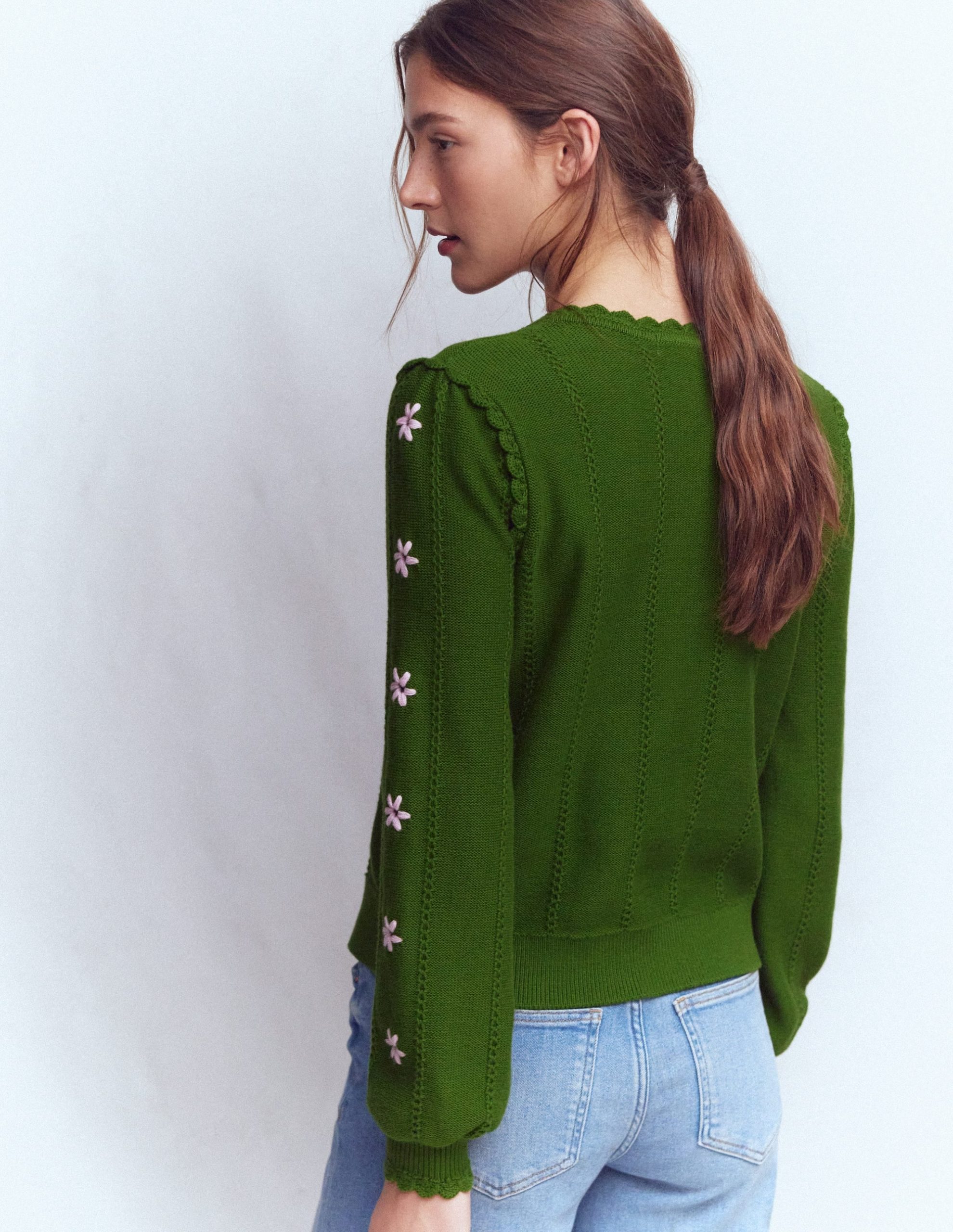 There’s nothing like a bit of crochet to liven up your knitwear collection. This one is made from 100% cotton and features scalloped edges for look-at-me detailing. Pair with jeans to elevate your weekend outfits.
