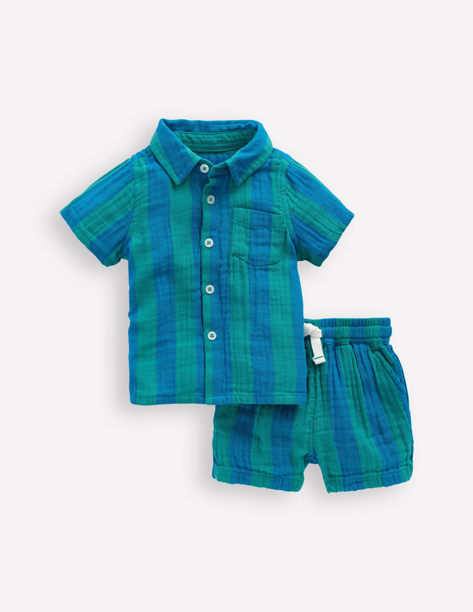 Woven Shirt Play Set-Blue and Green Stripe