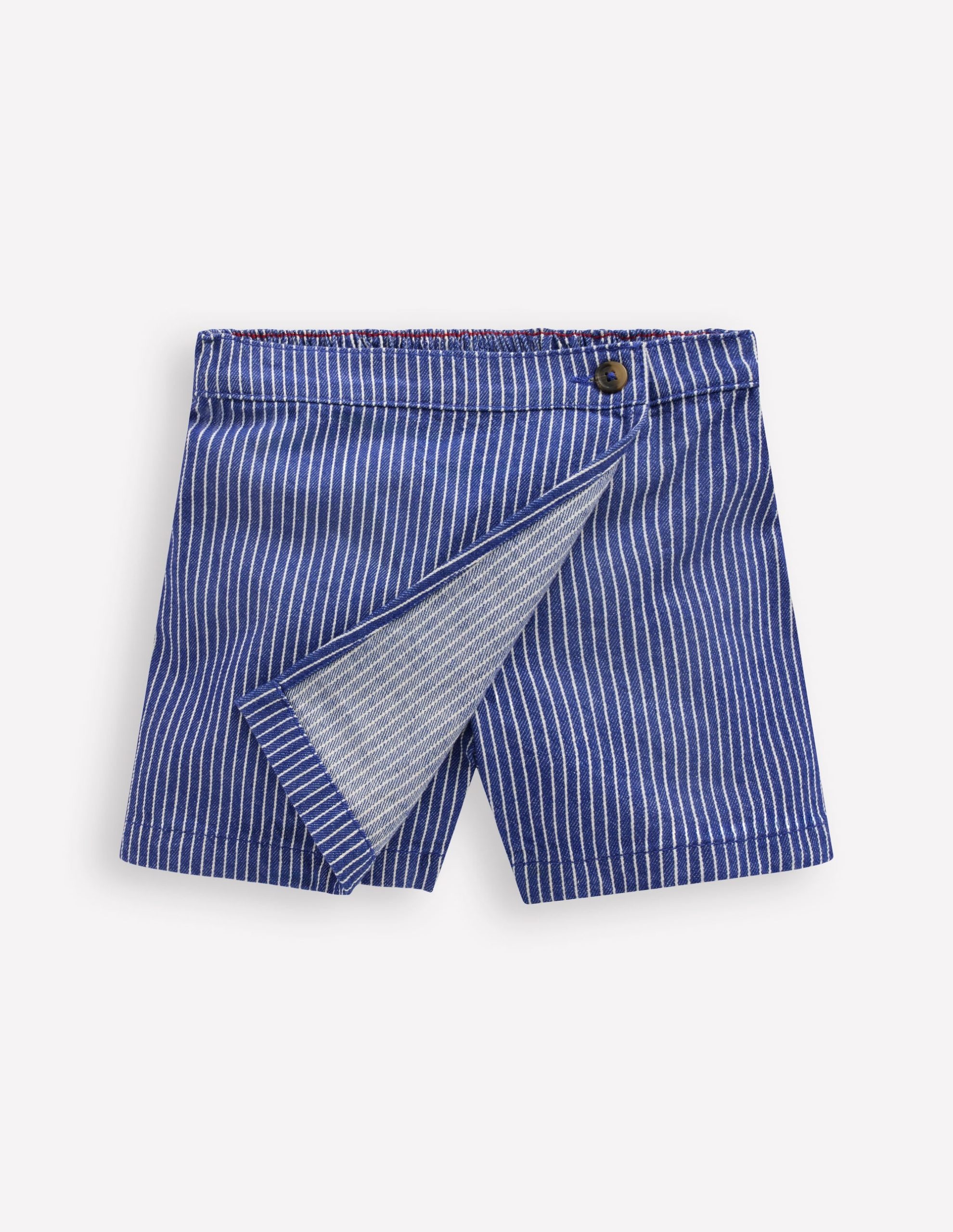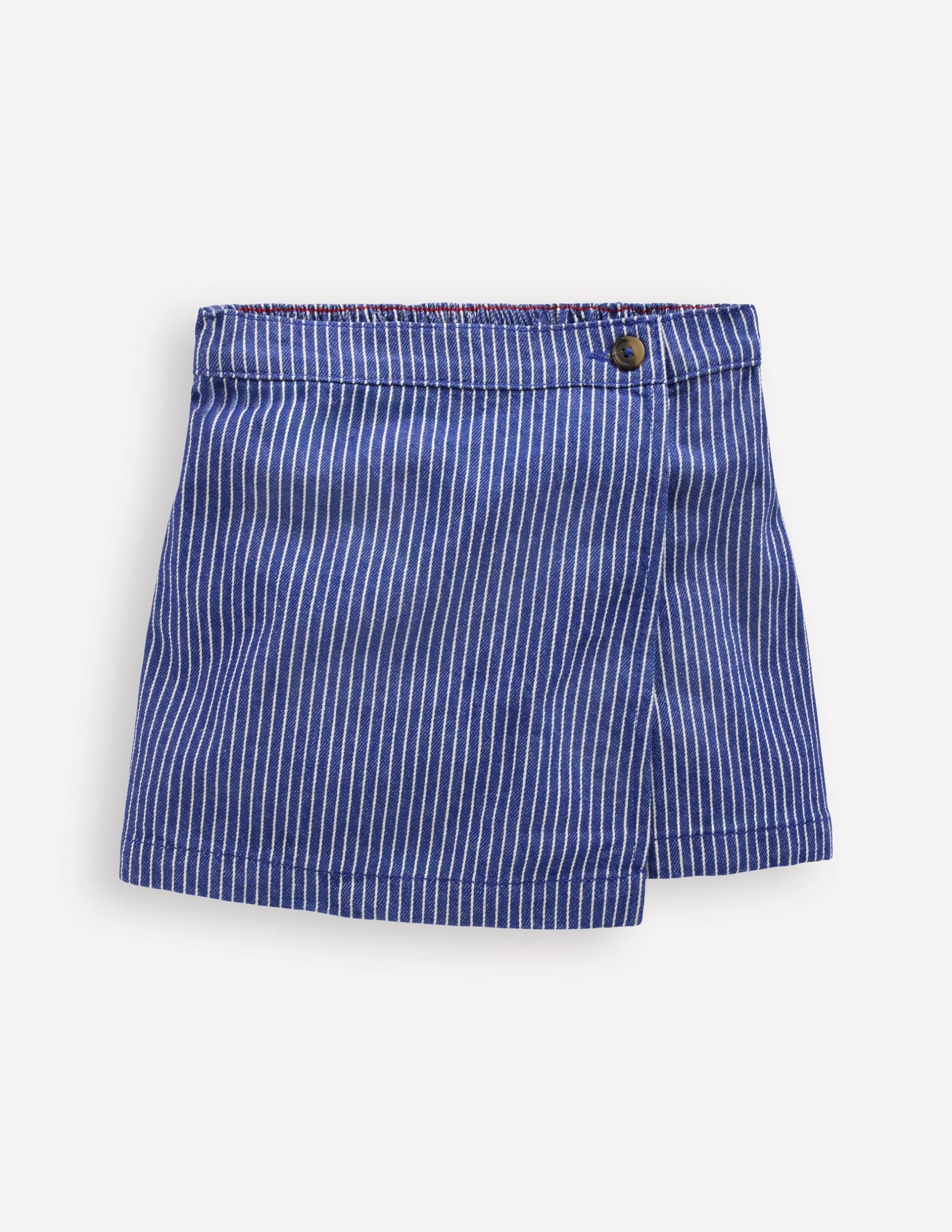 Wrap Woven Skort-Sapphire Blue/ Ivory Stripe