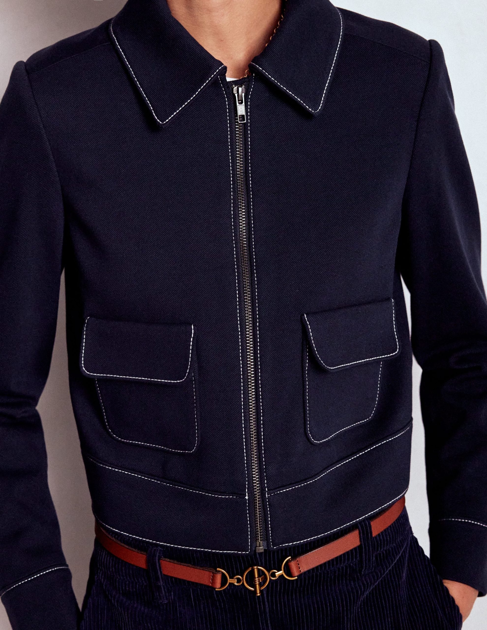 As sharp as it is relaxed, our zip patch pocket jacket features contrast stitching and clean, modern lines that promise to elevate even the most basic jeans and T-shirt pairing.