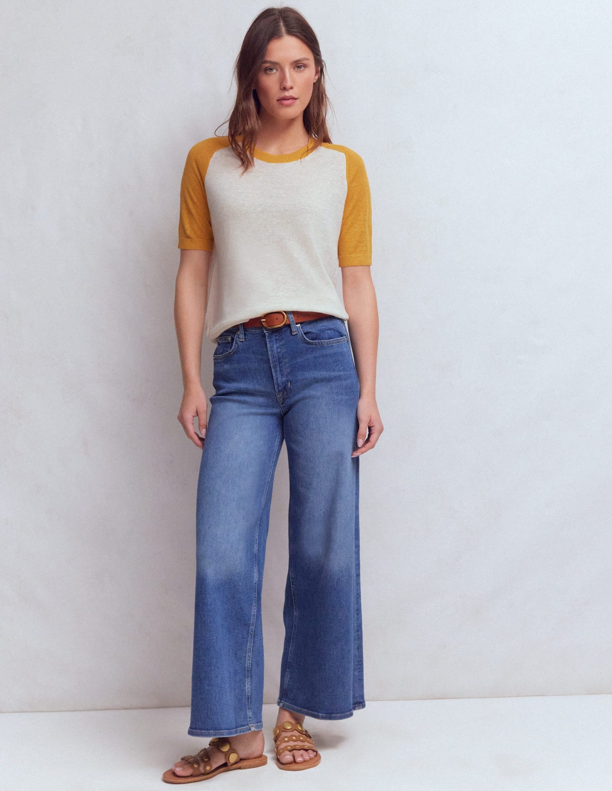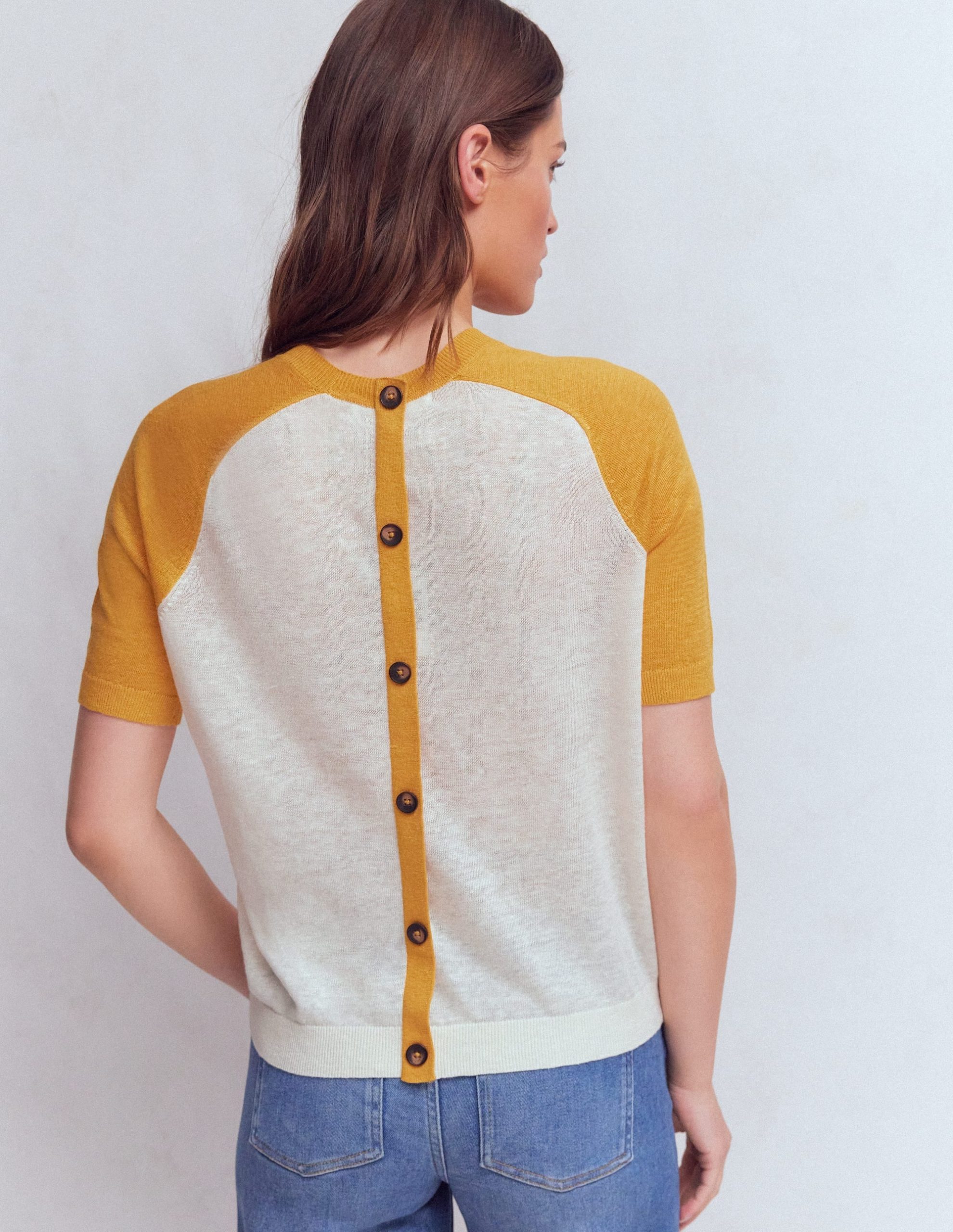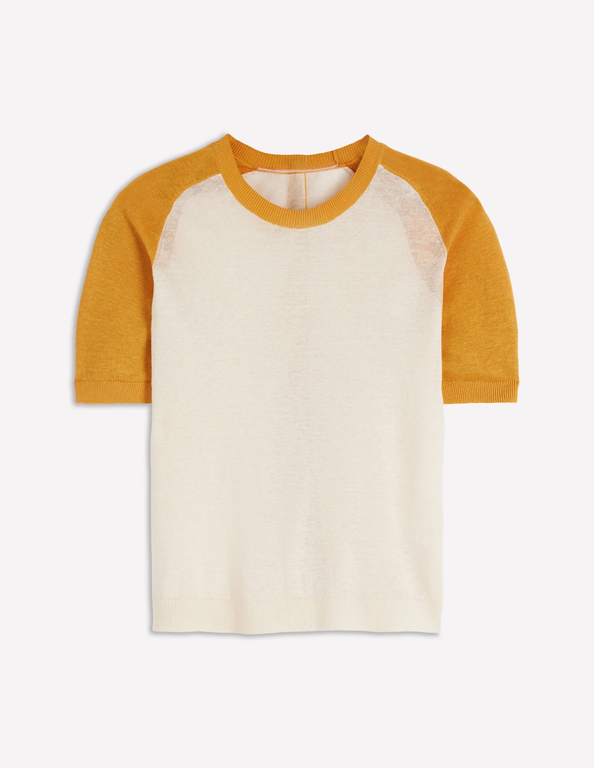 Agnes Linen T-Shirt-Yellow. Colour Block