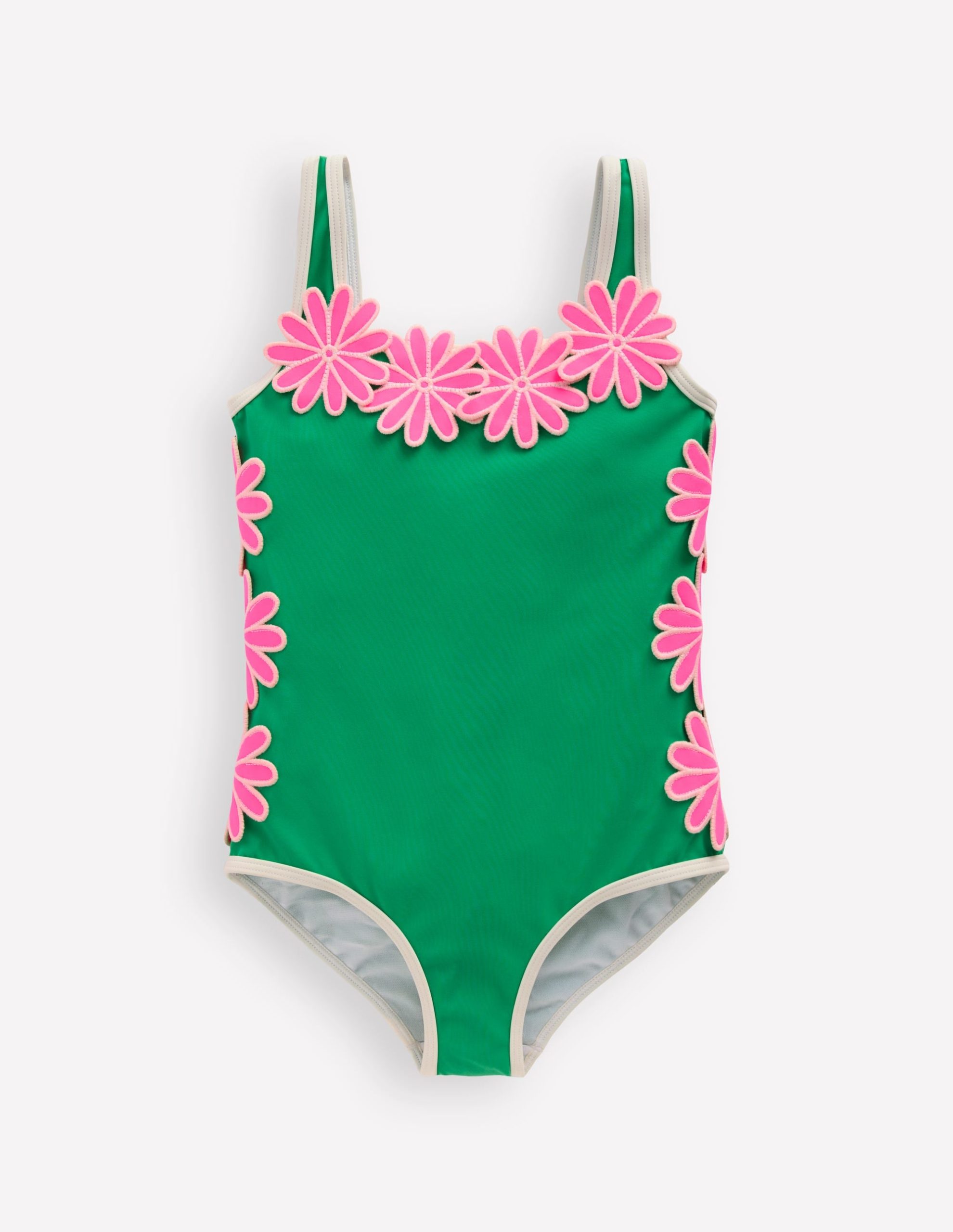 Appliqu?? Swimsuit-Pea Green/Sorbet Pink Daisy