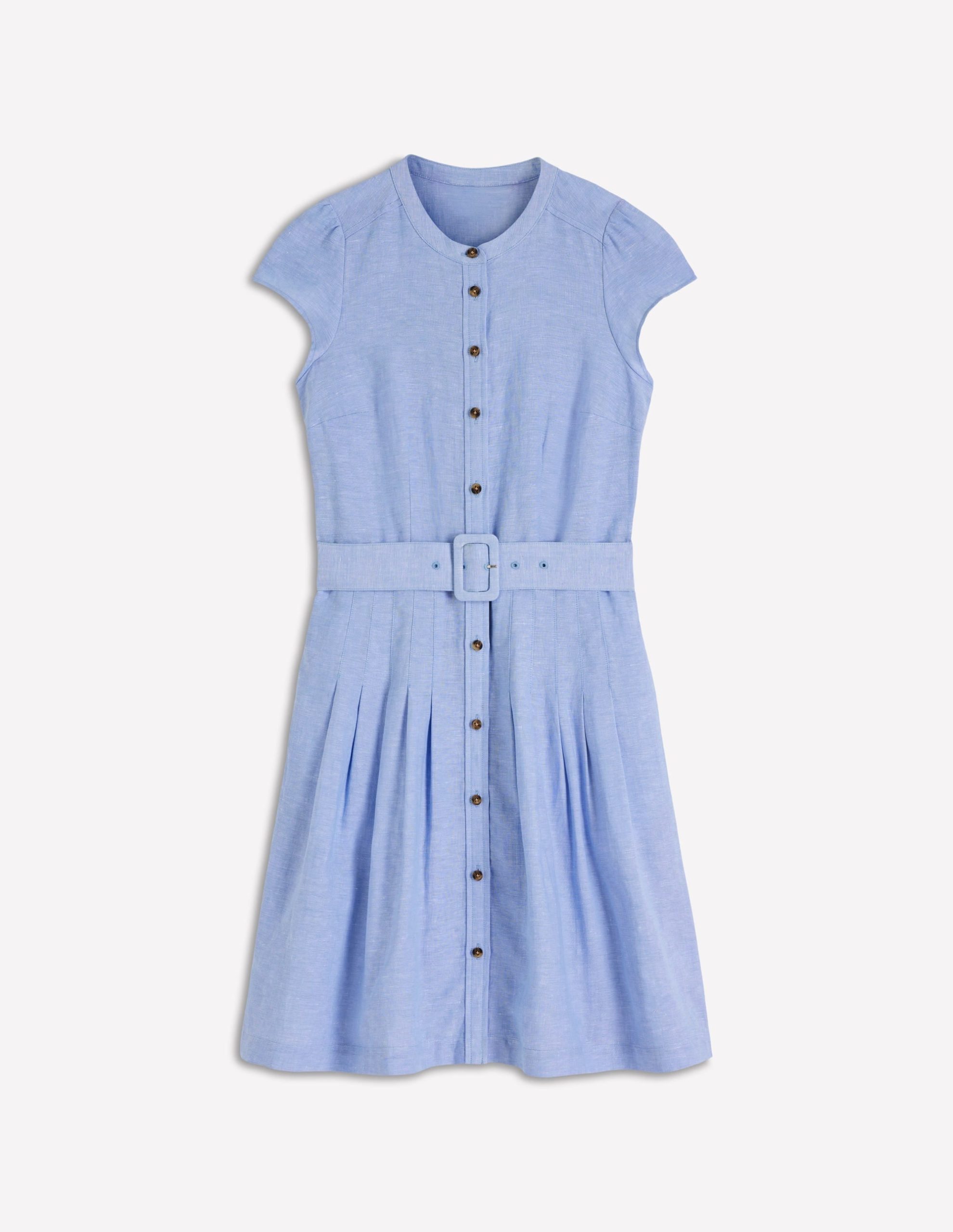 You’ll soon wonder where Arabella has been all your life. Crafted from a cotton linen blend fabric. this delightful dress features a short flippy skirt. cap sleeves and buckled belt. Take her as your plus one to all your summer events.