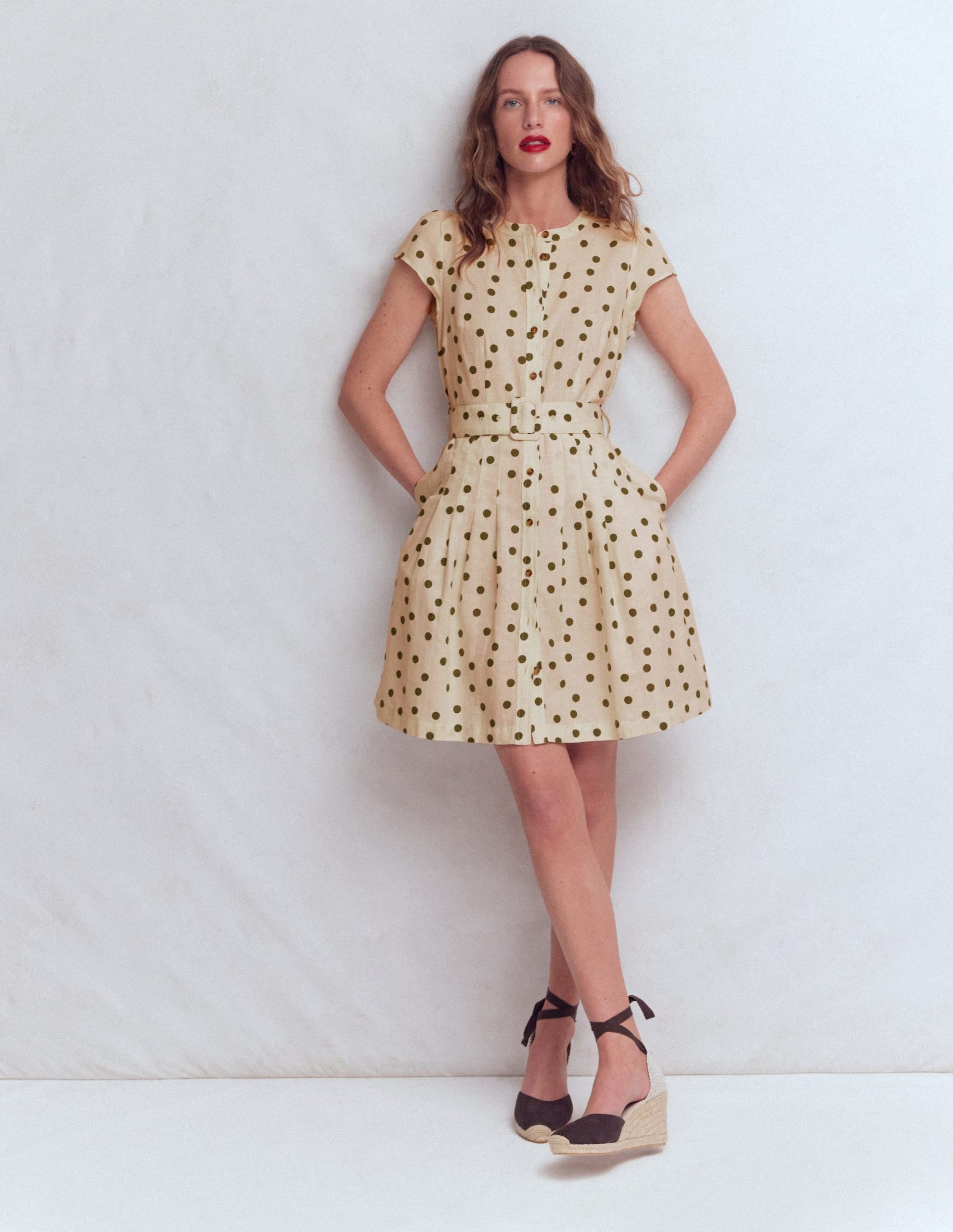 Arabella Short Linen Dress-Ivory Painted Dot Spaced