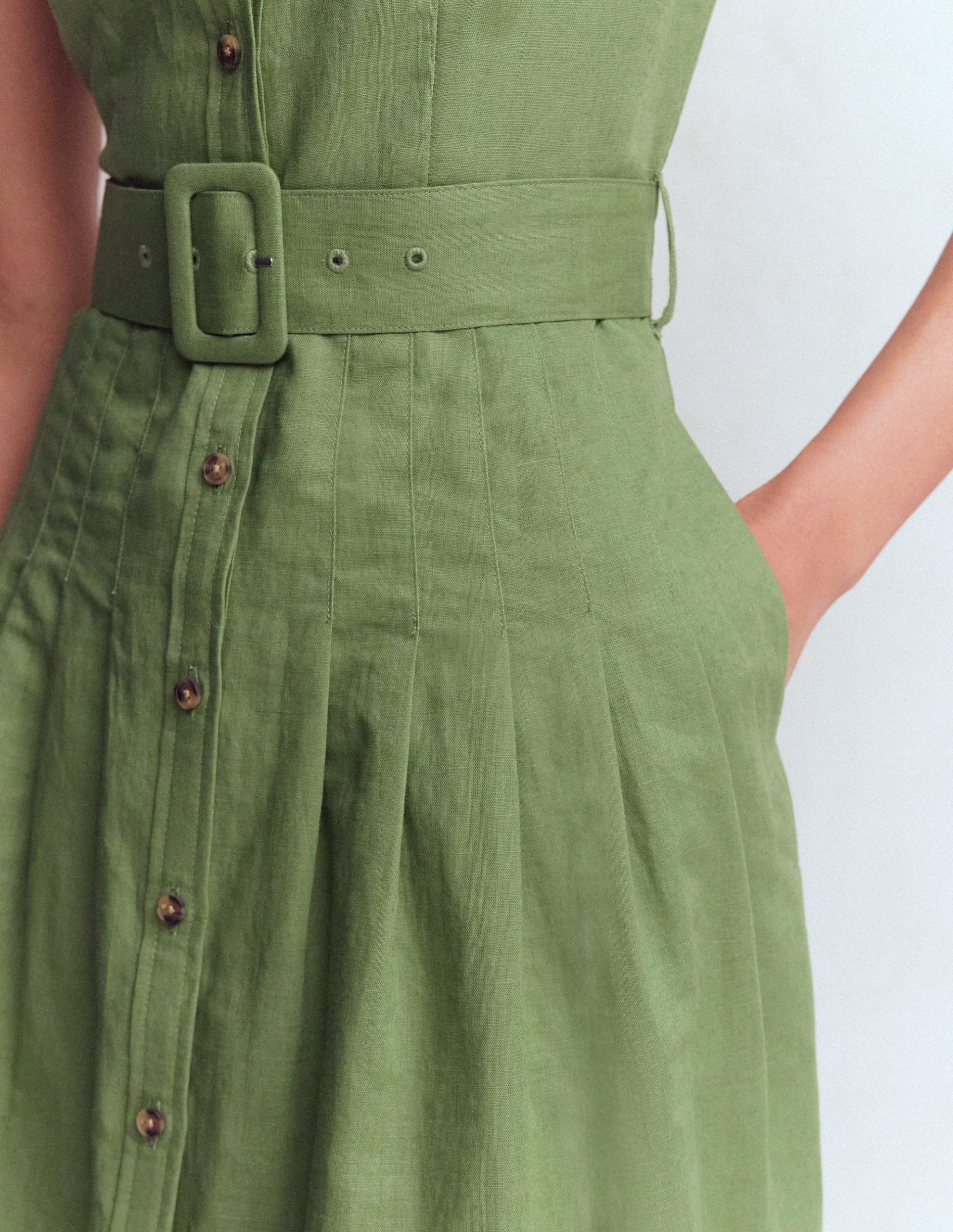 Arabella Short Linen Dress-Safari Green