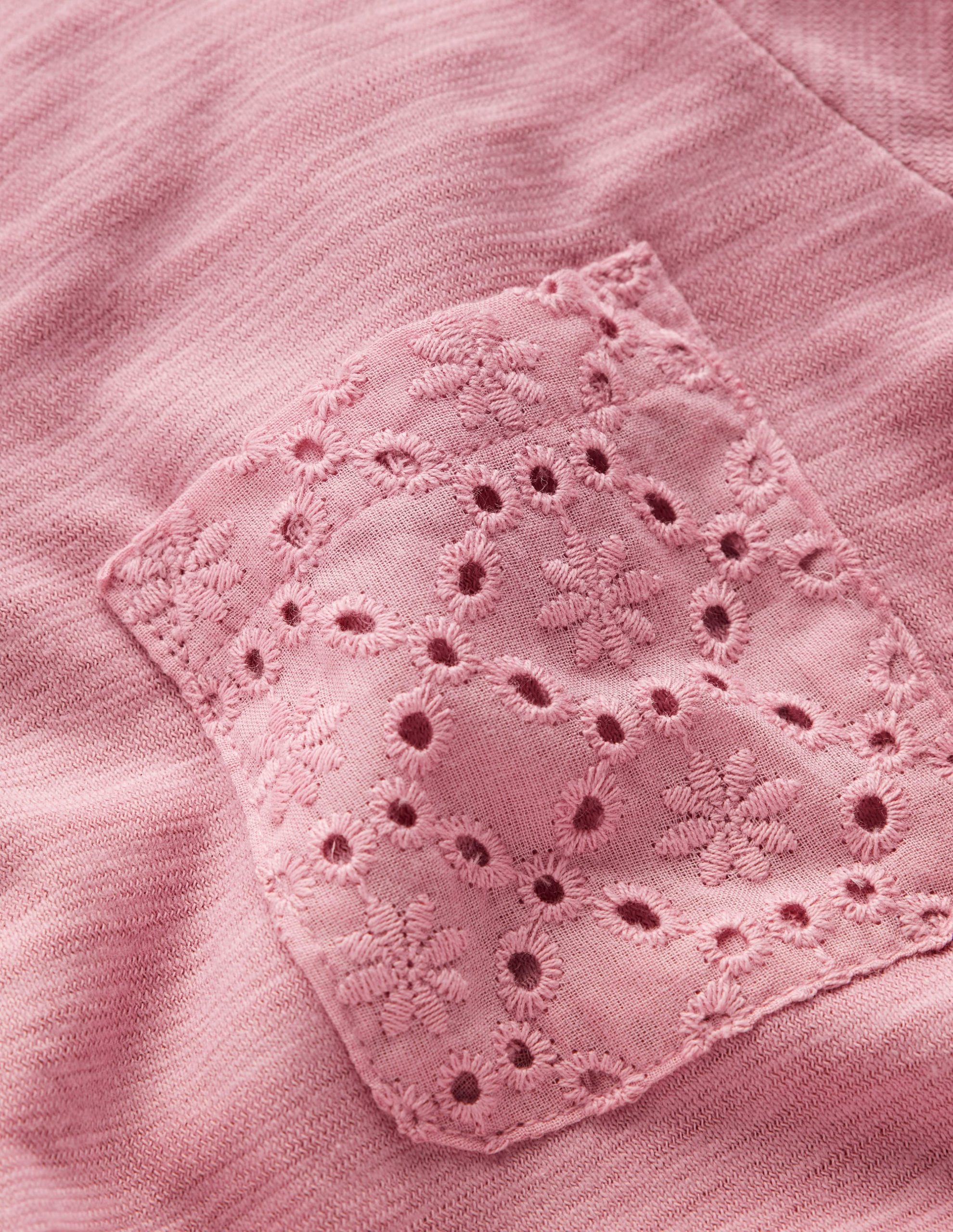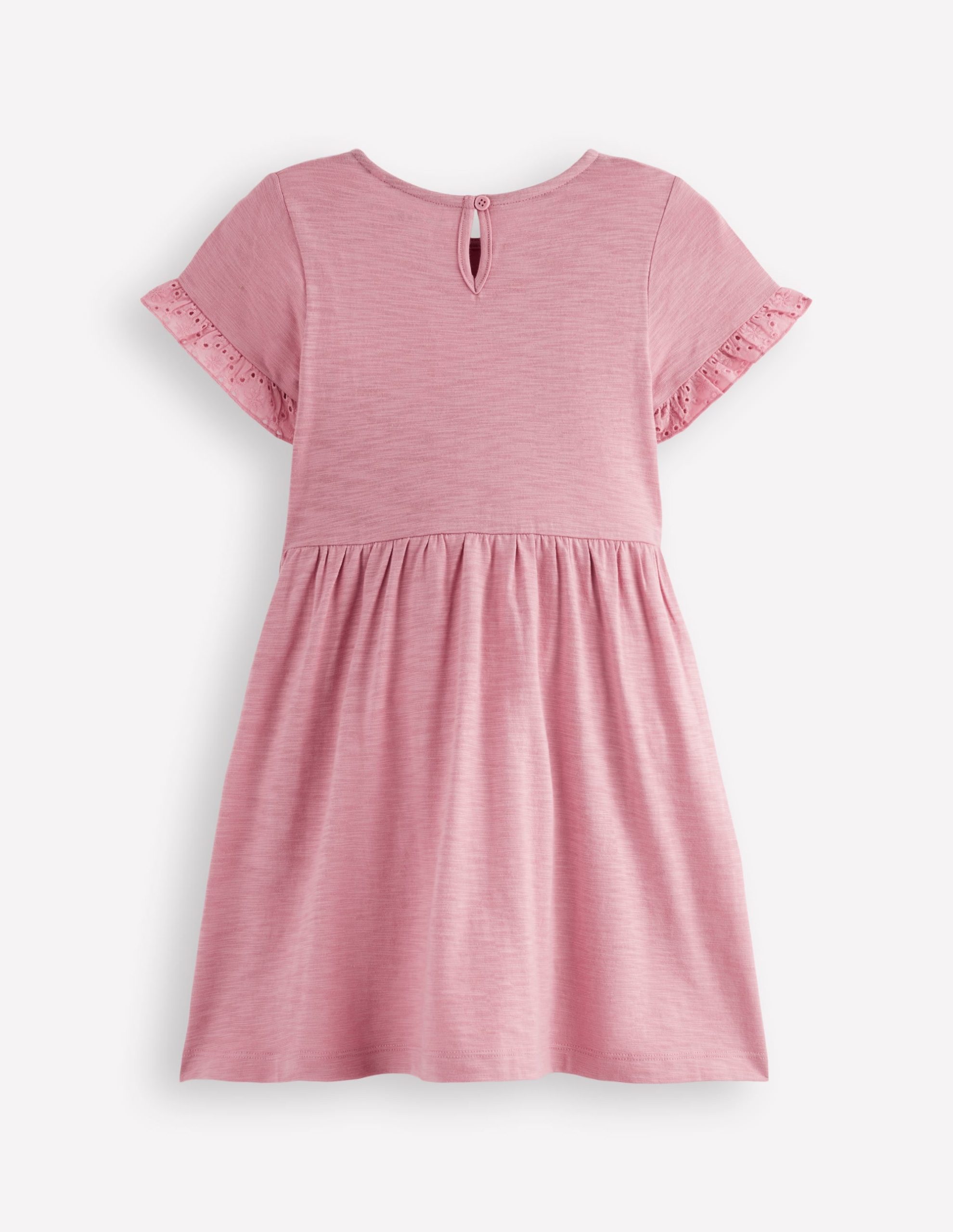 How to make the comfiest dress for every day: soft jersey cotton, a relaxed body, and a gathered skirt. Bonus points for broderie detail on the sleeves and pocket.