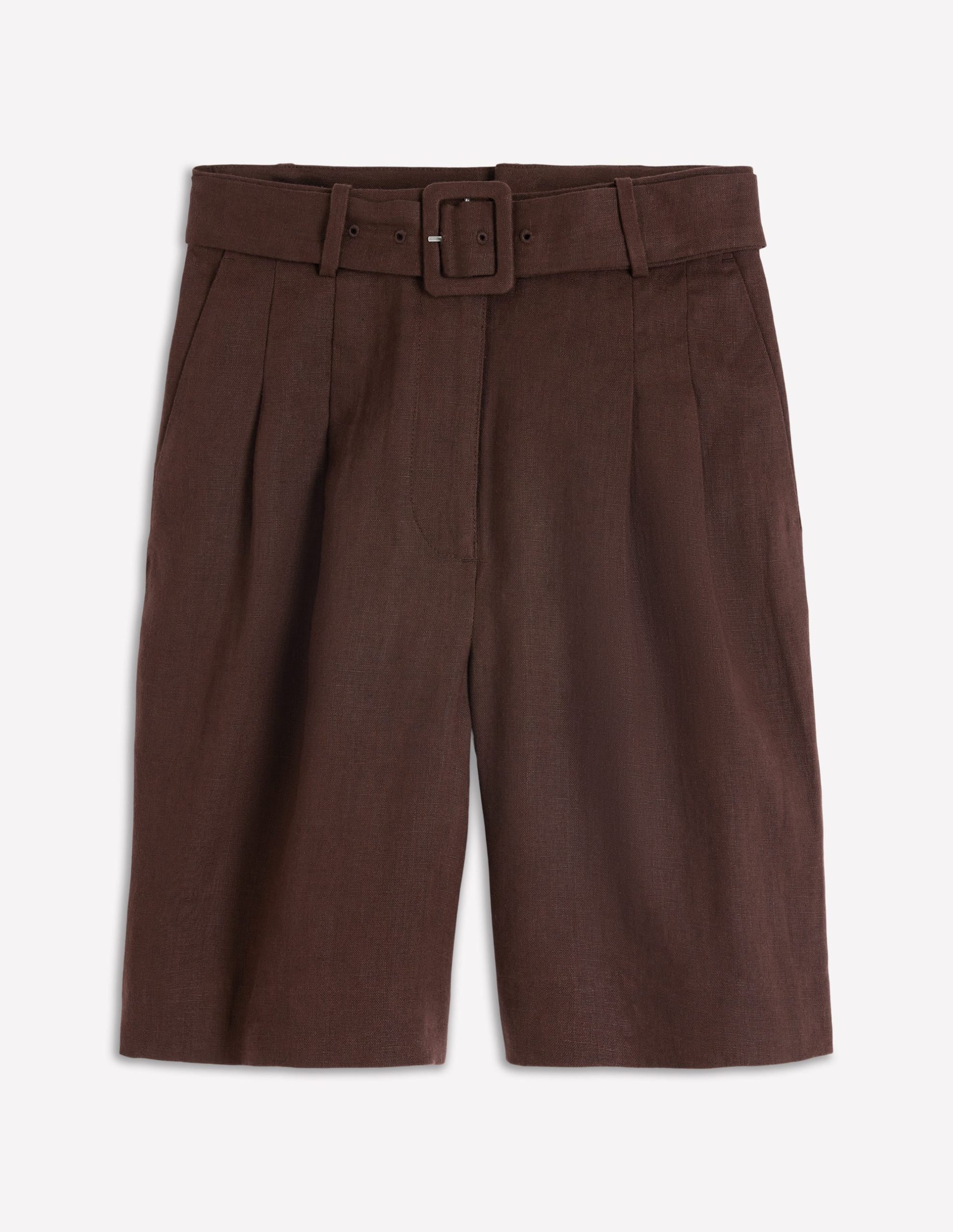 Chelsea Belted Linen Shorts-Bitter Chocolate