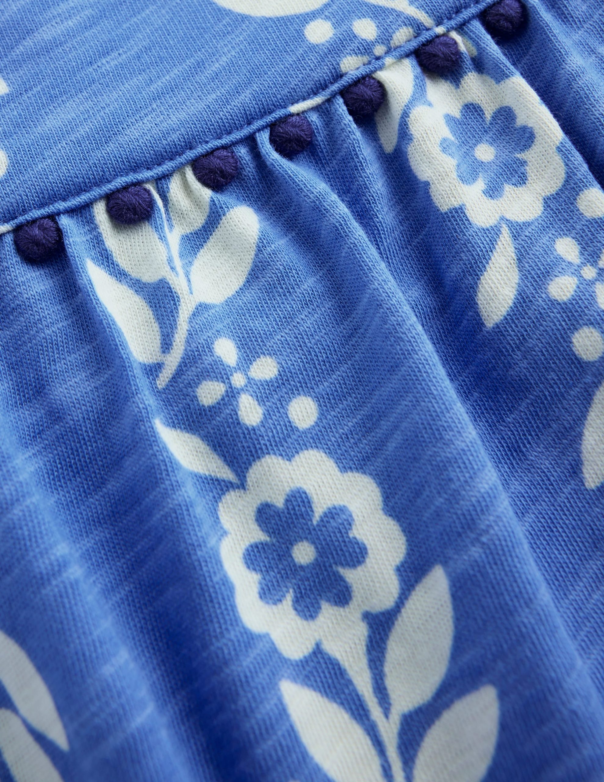 Ciara Pom Trim Jersey Romper-Blue Floral
