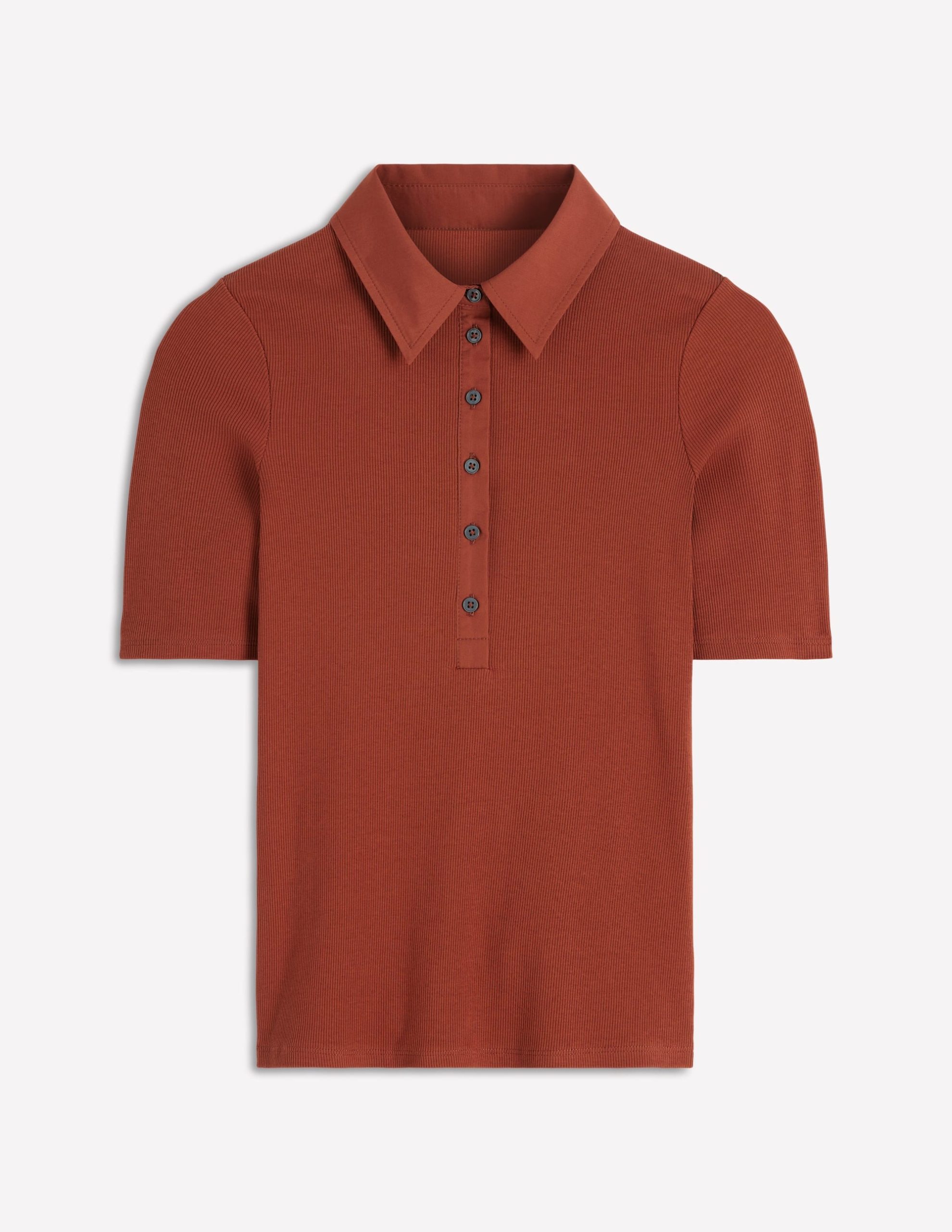 Collared Ribbed Henley Top-Burnt Orange