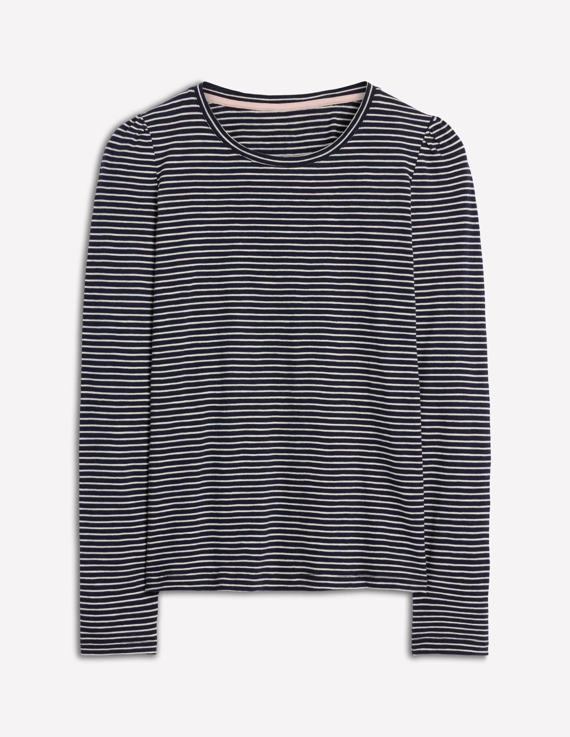 Cotton Crew Long Sleeve Top-Navy, Ivory Stripe