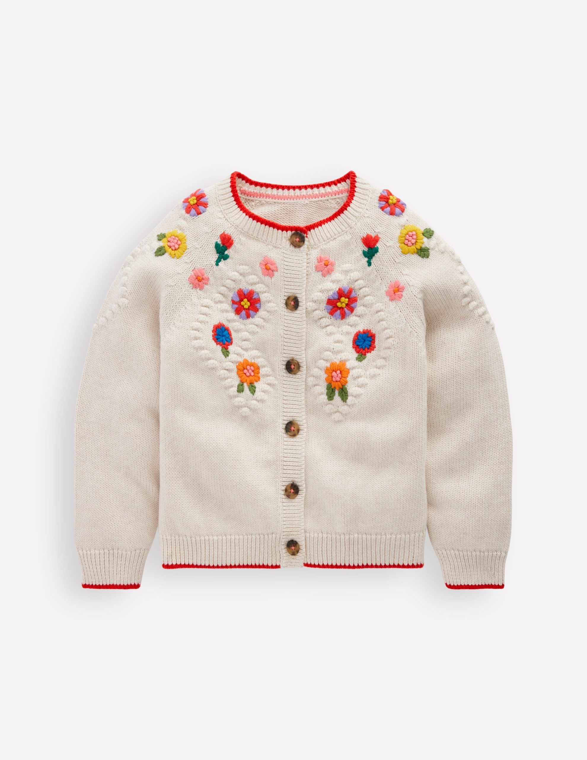 Floral embroidery meets colour-contrast scallop stitching and a Peter Pan collar. The result? This adorable cardigan. The best part? This design exists in our womenswear collection ready for your own matching Mini moment. Aww.
