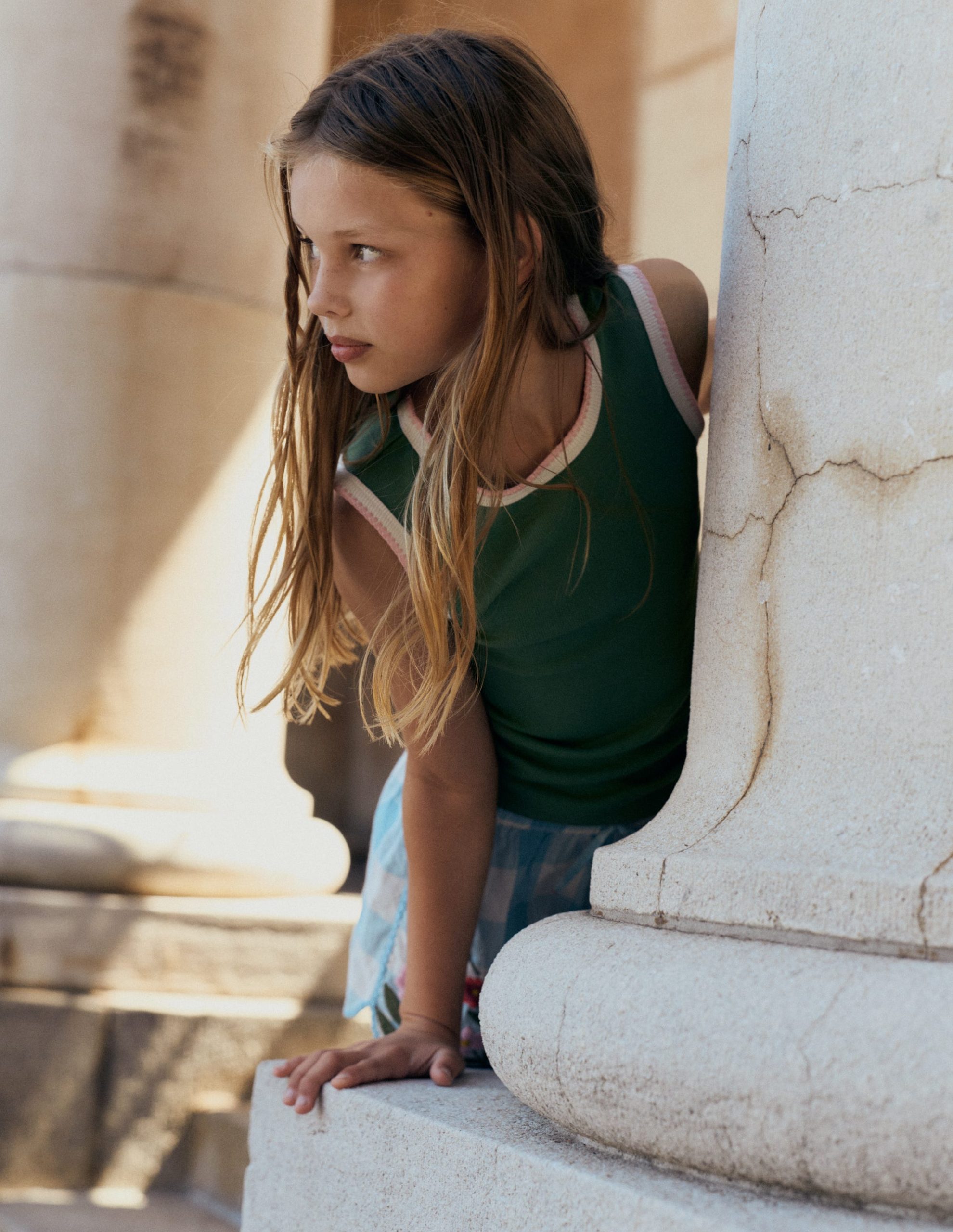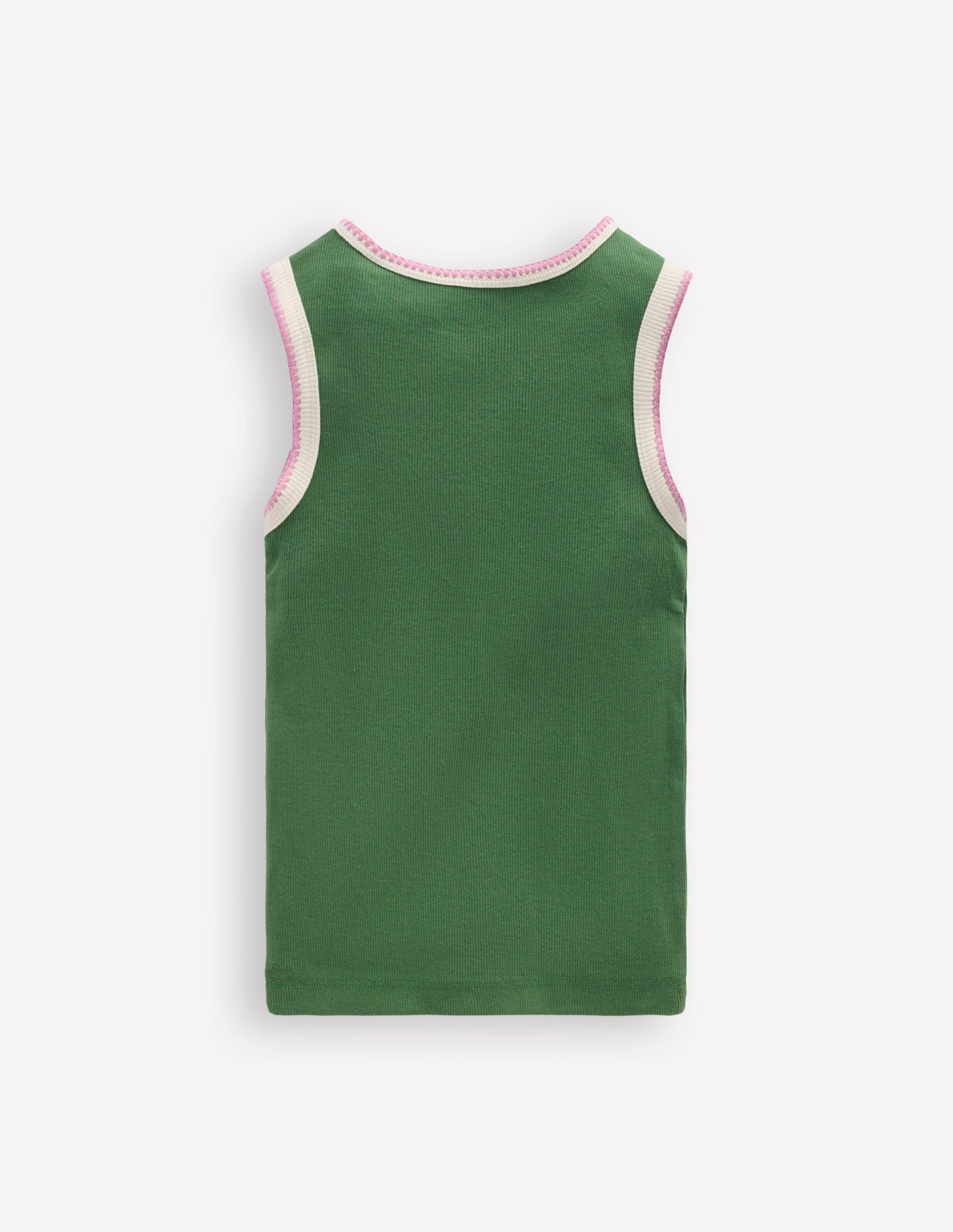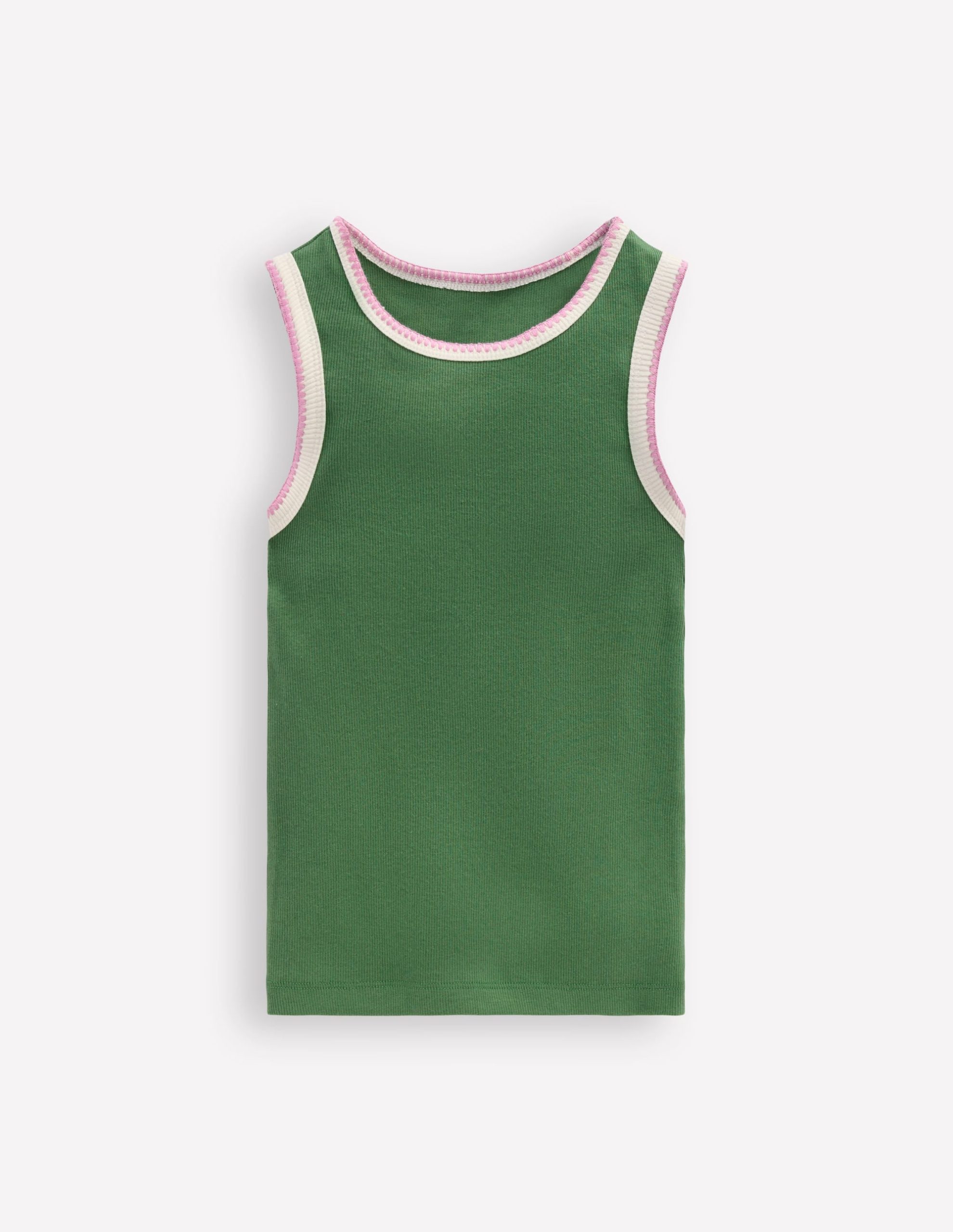 A ribbed cotton vest like you’ve never seen one before. It features a little stretch. snazzy crochet trim and three different colours. Minis will want to wear it as a spring layer now and for sports. fun days out and outdoor adventures all summer.