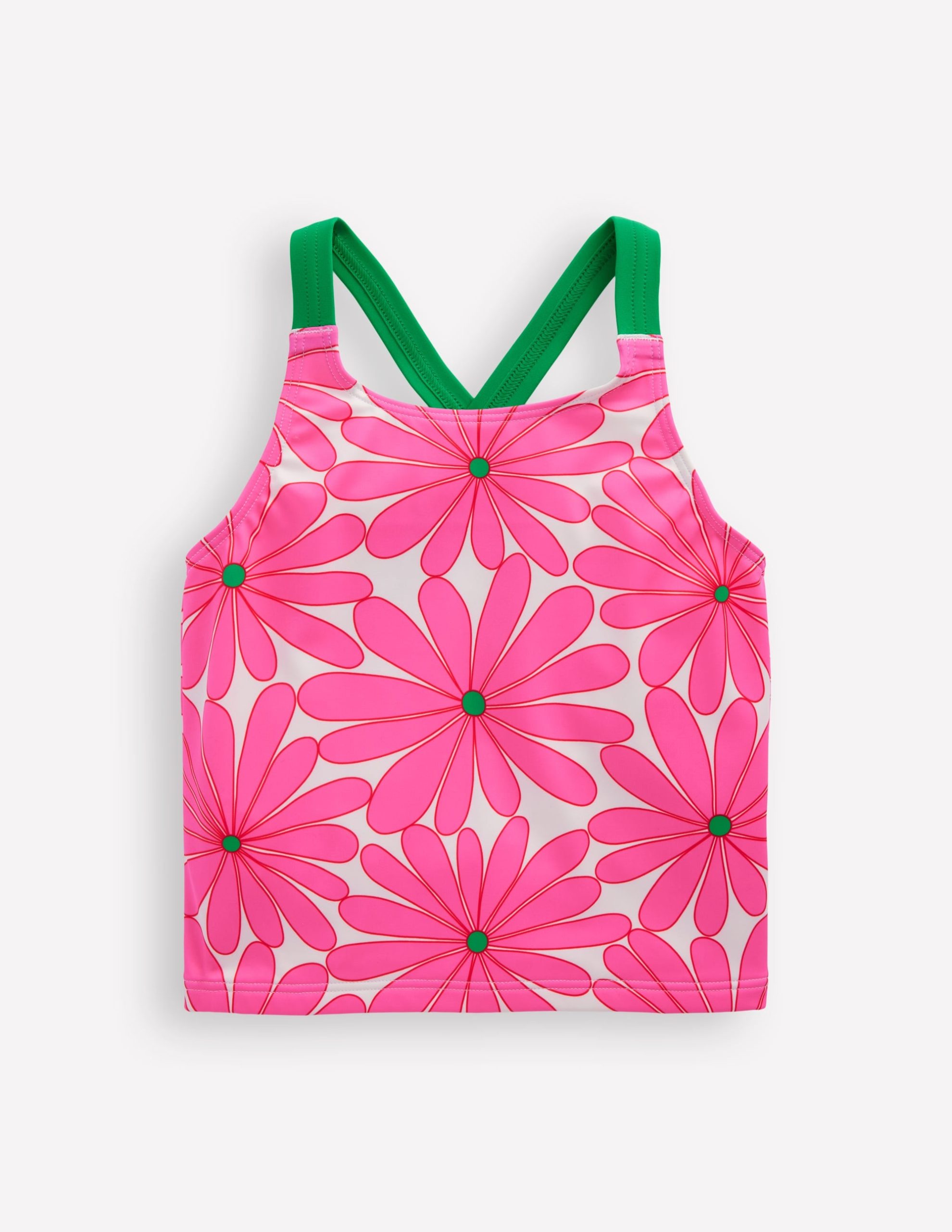 This tankini top is ready for swimming lessons or winter sun getaways. It has a classic floral print and comfy cross-back straps. Pair with the matching bikini bottoms or swim shorts.