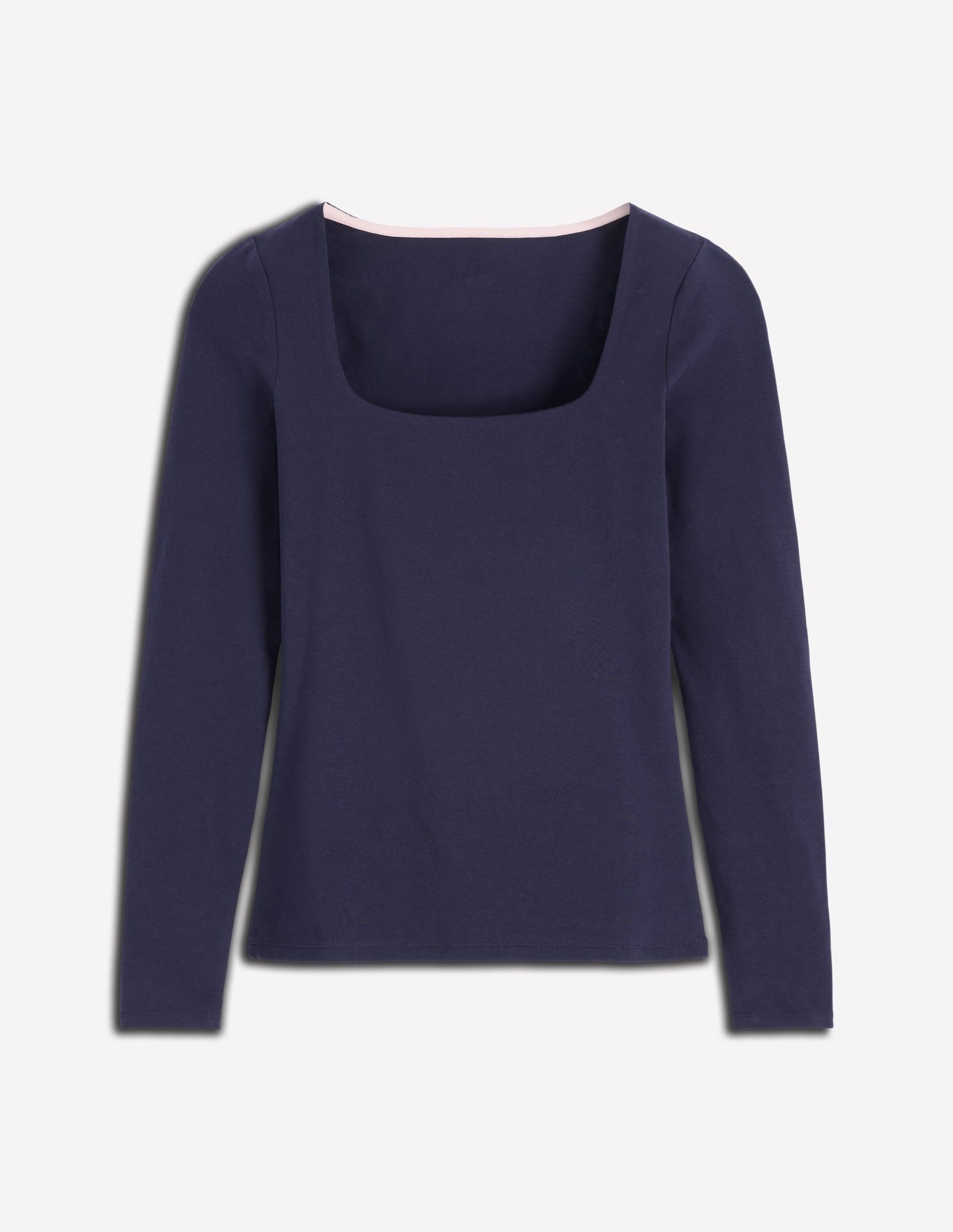 A wardrobe staple, this long-sleeve T-shirt has a flattering square neck and is made using two layers of cotton with added stretch for a fitted look.