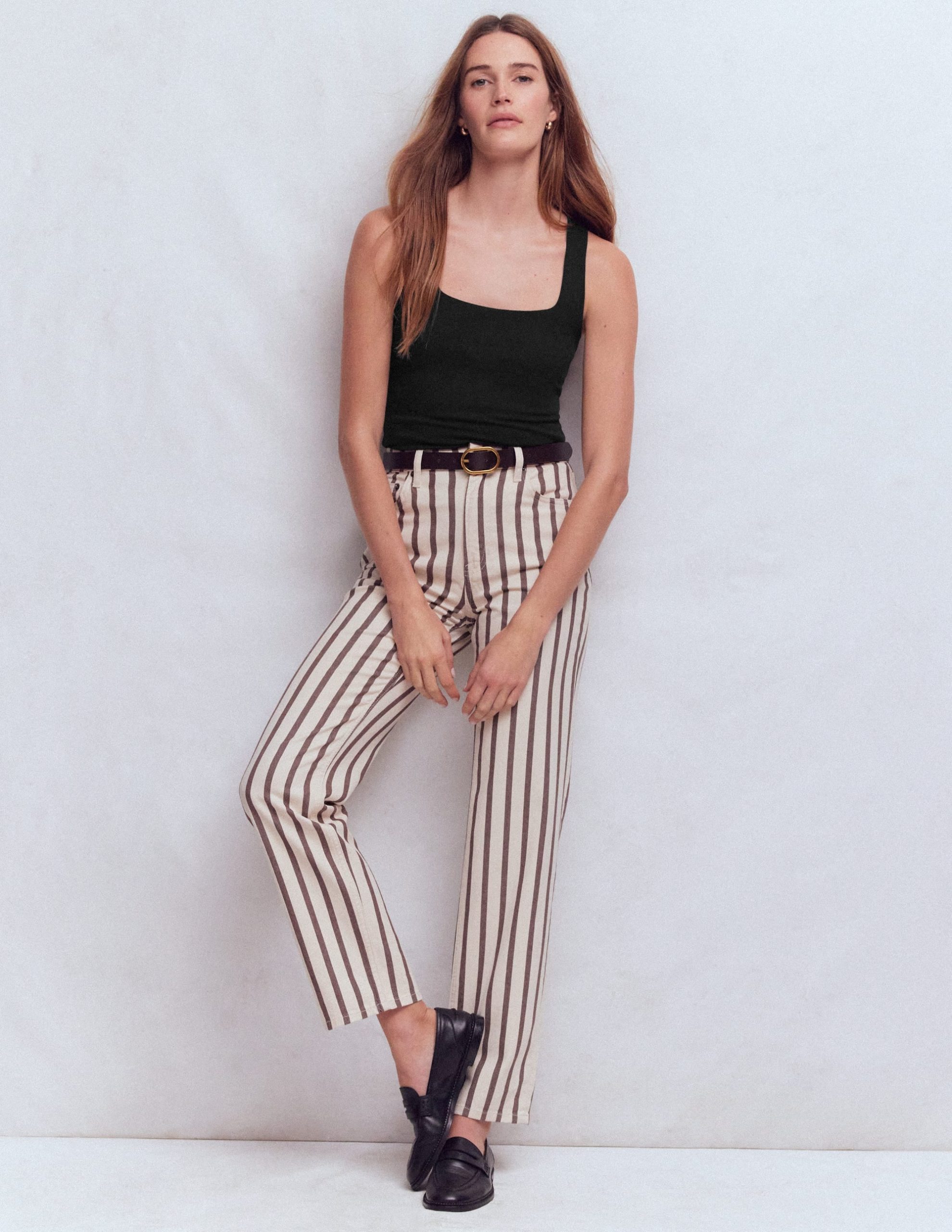 A season-spanning vest featuring a square neck (to show off your stacked necklaces) and two layers of cotton with a little added stretch. It’ll work now peaking out from under cardigans and as a summer staple when the weather heats up (it will, we promise).
