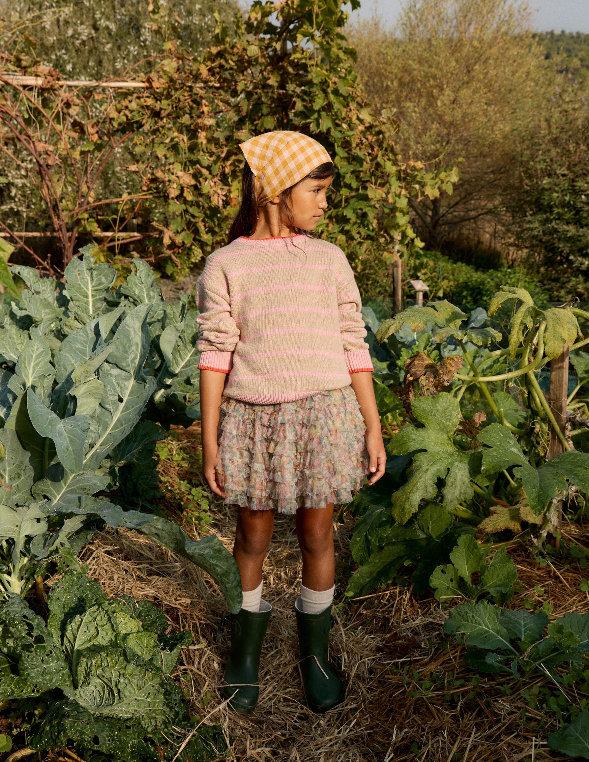 When the forecast says it’s time for hot chocolate, Minis need a snuggly jumper. This cotton blend knit has a touch of wool for extra warmth and a relaxed dropped-shoulder fit. Choose from two stripy designs with an adorable contrast trim (or get both).