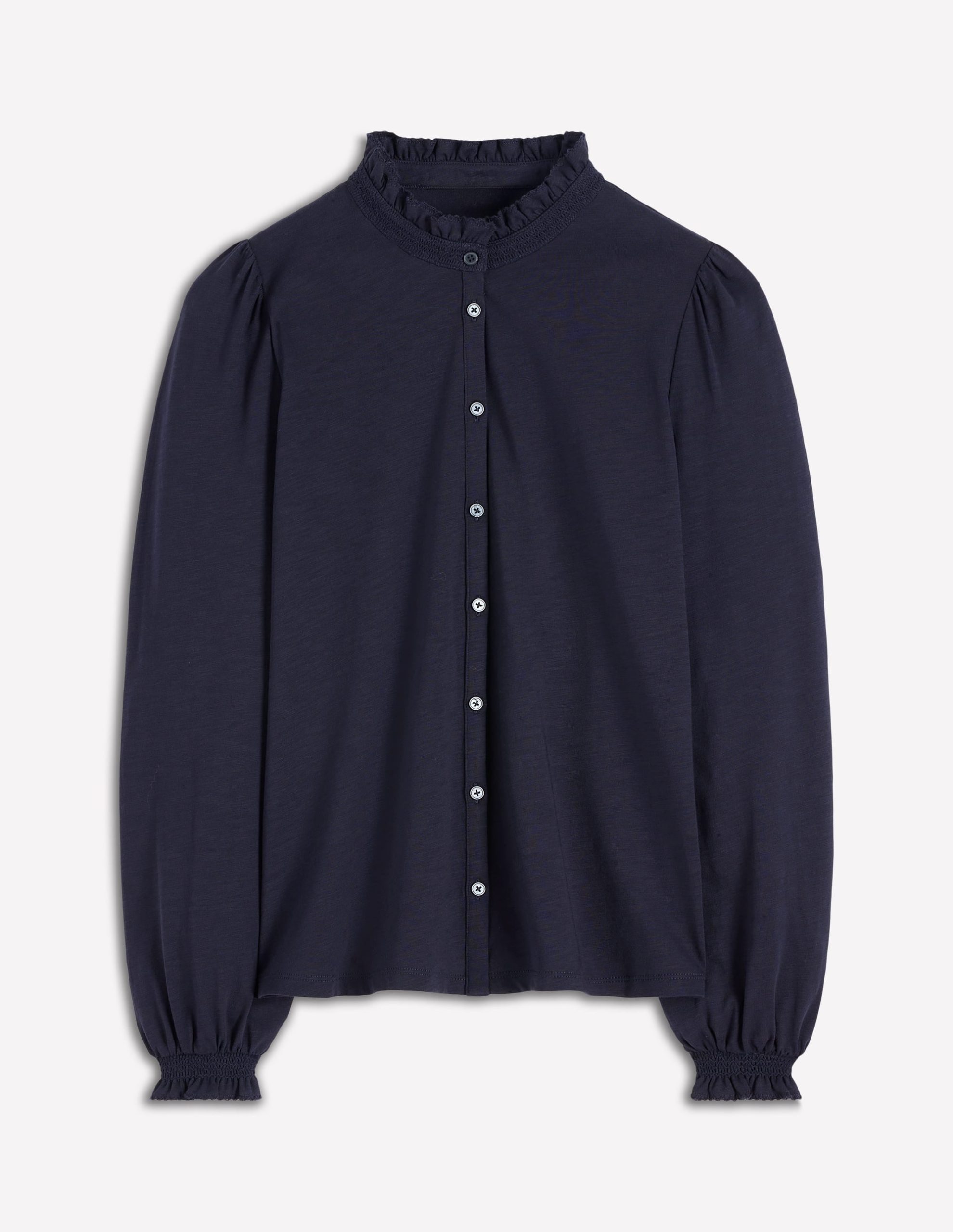 Effie Smocked Detail Shirt-Navy