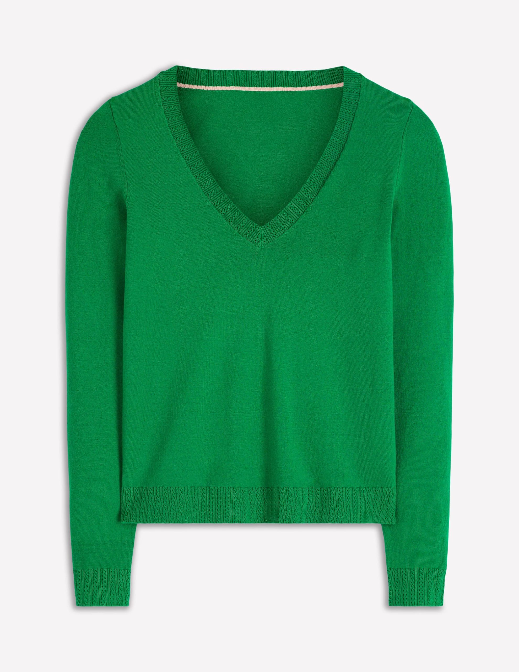 Emilia Cotton V Neck Sweater-Rich Emerald