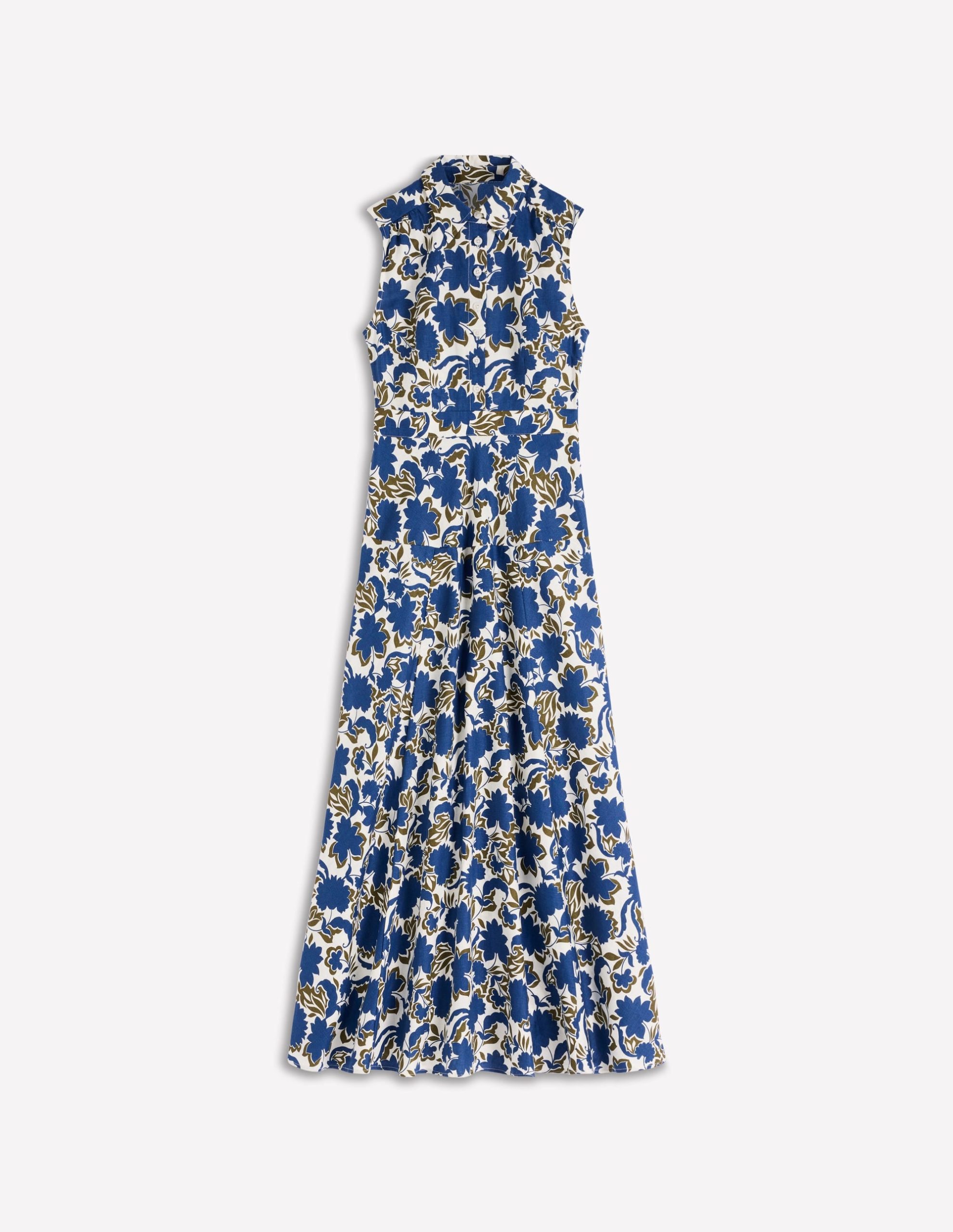Erma Drop Waist Linen Dress-Blue Shadow Blossom