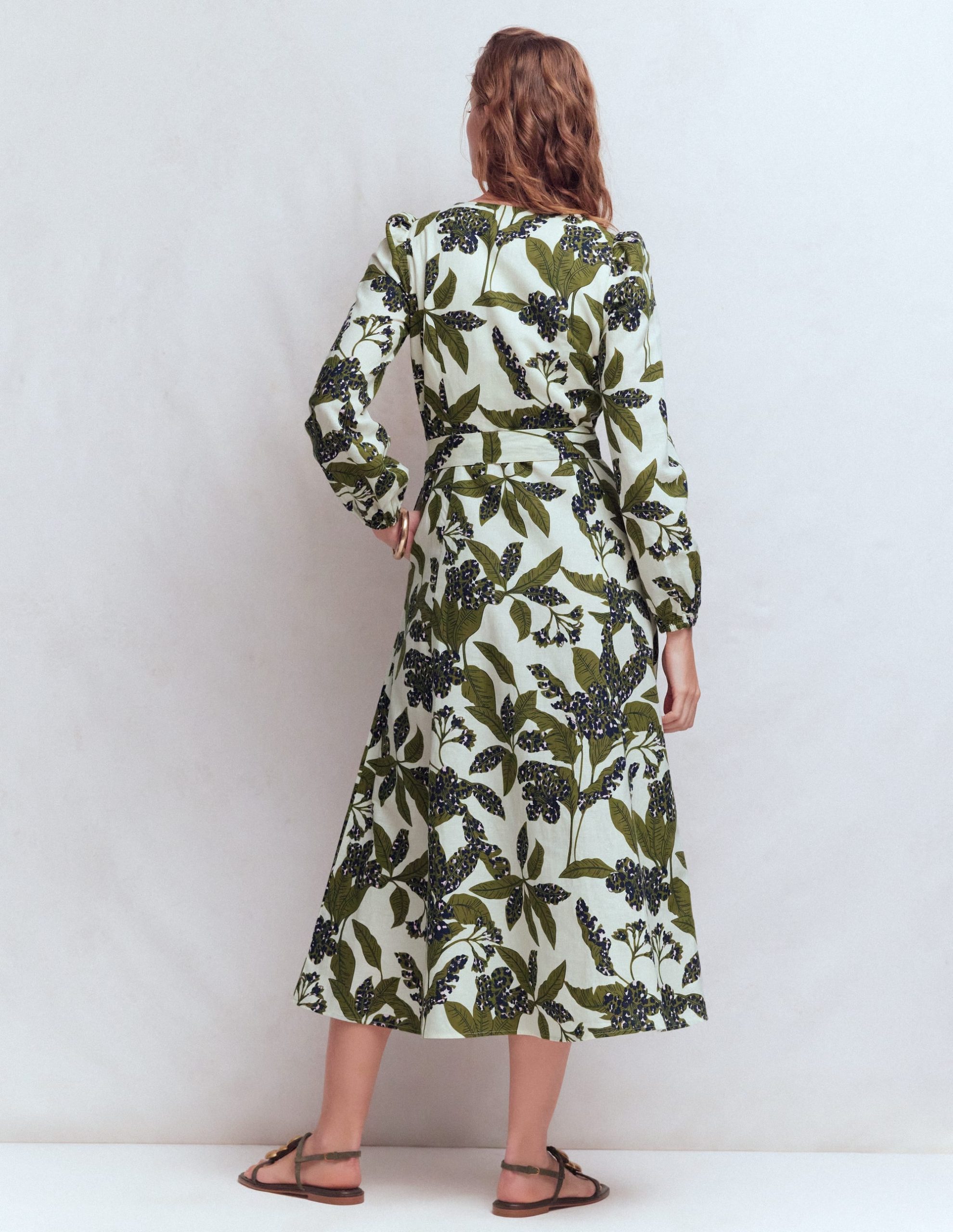 This statement print dress is surprisingly versatile with its blouson sleeves and linen-cotton blend. Pair with heels and gold jewellery for special occasions or dress down with sandals on holiday.