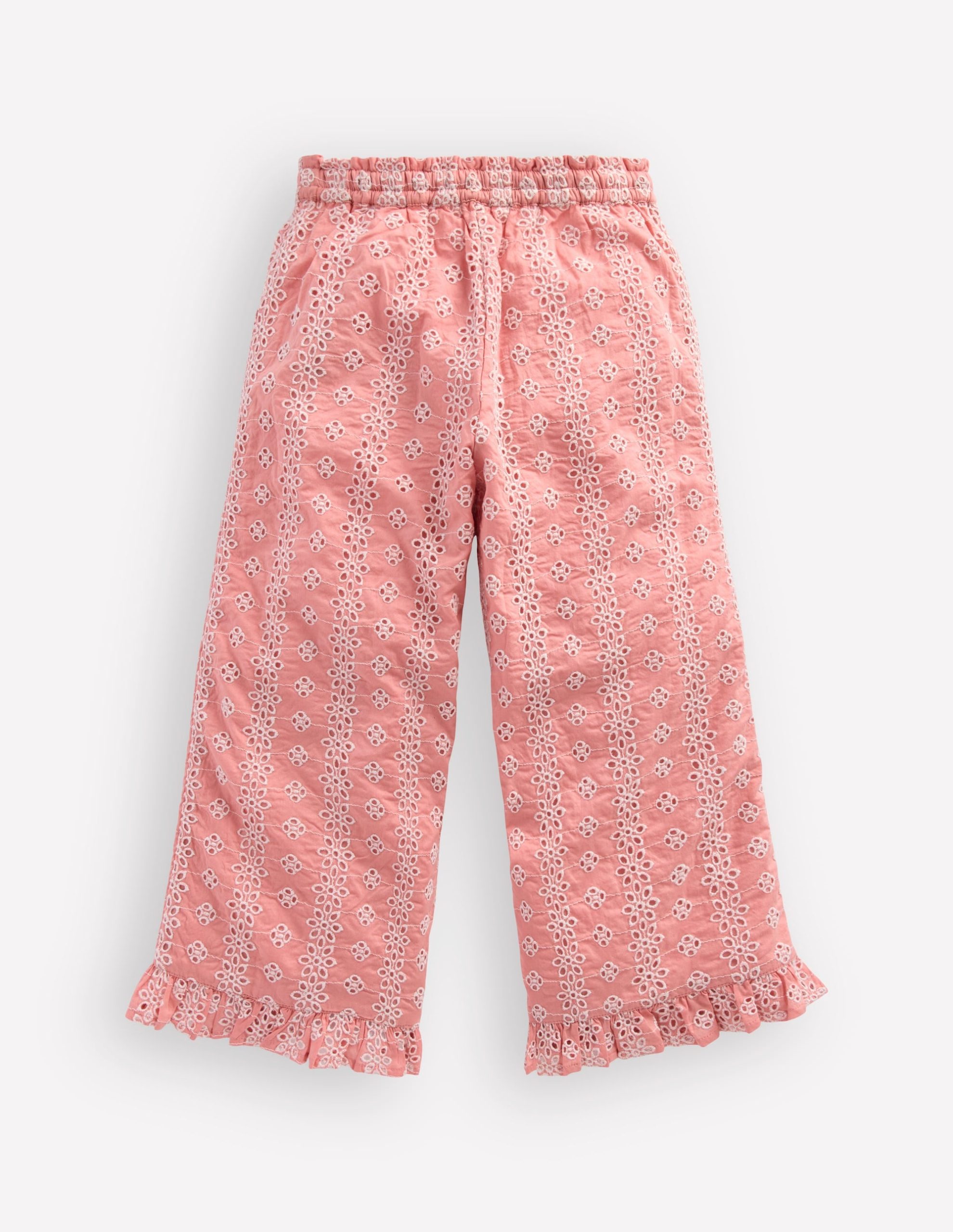 How do we make Mini trousers so joyful With pretty prints and a frilly hem. This pair also has a stretchy drawstring waistband and flared legs made for high kicks. Oh. and there’s pockets.