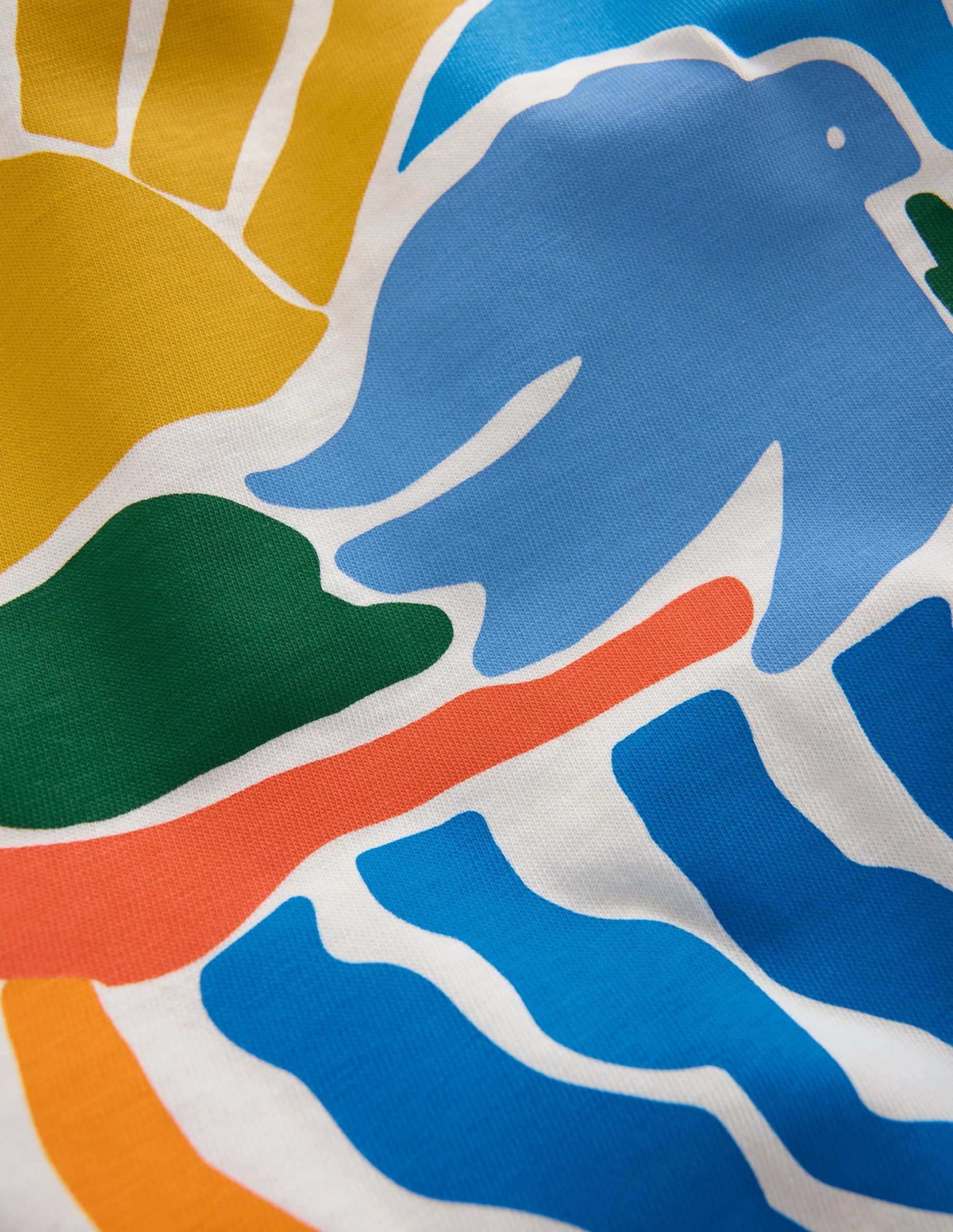 We love colourful prints so much we put them on the front and back of these cotton tees. The designs were all drawn by hand too. using the brightest colours we could find in the colouring box.