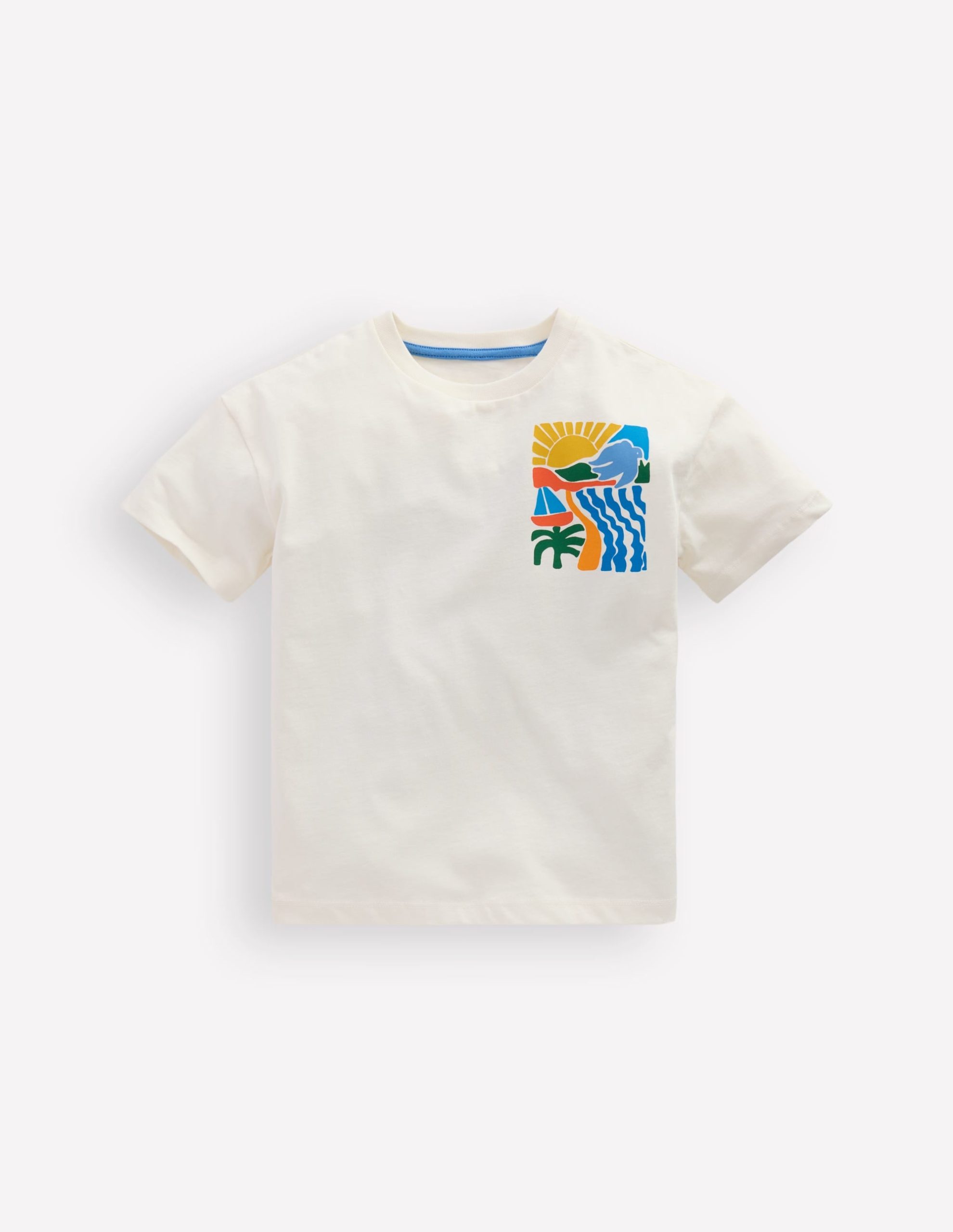 Front & Back Graphic T-shirt-Soft Ivory Sun Scape